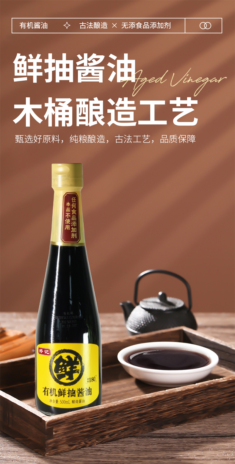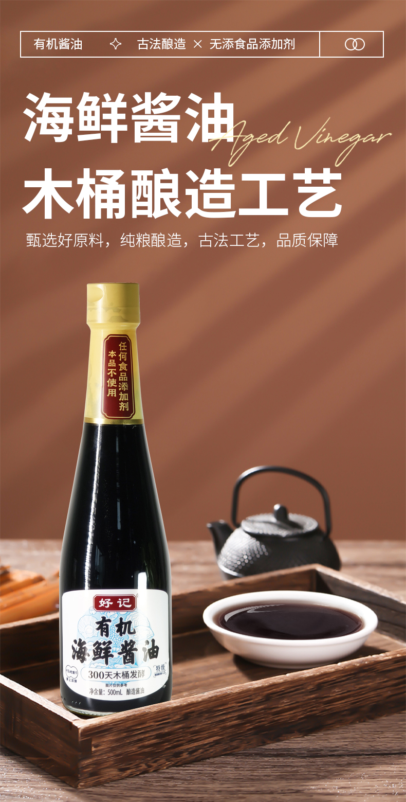 好记系列-木桶酿造 有机酱油/有机海鲜酱油/有机鲜抽酱酿造油--500ML