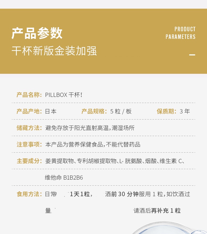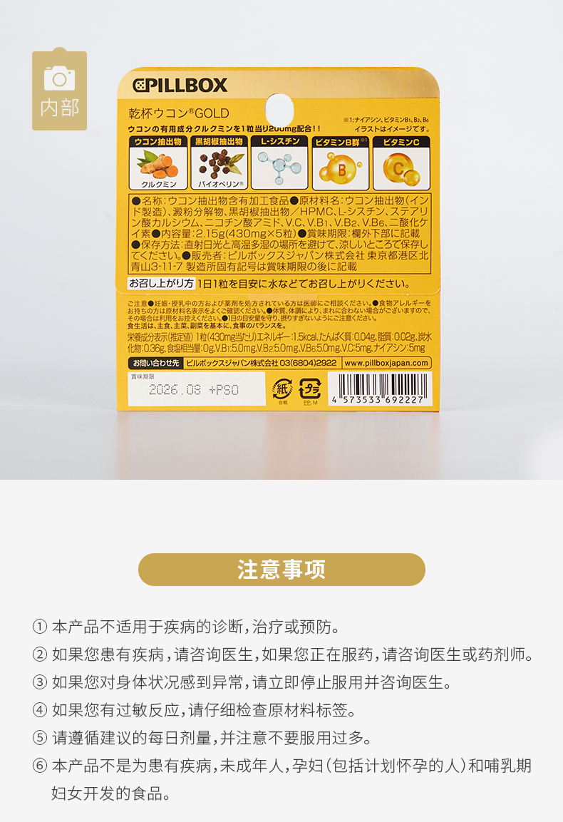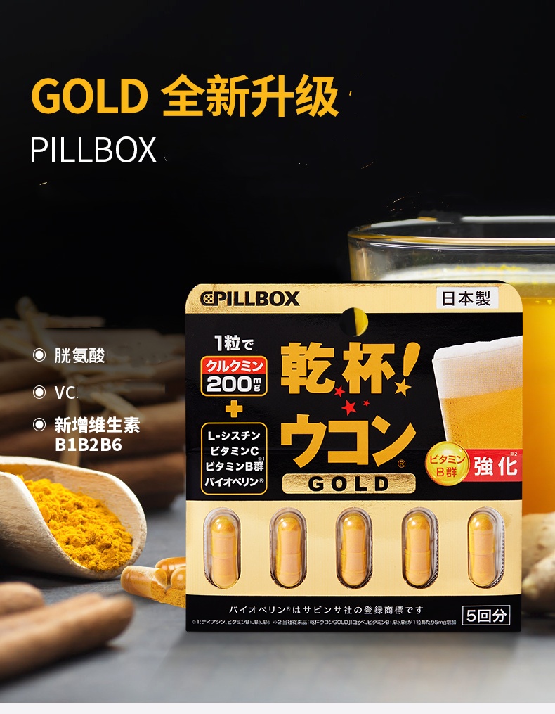 【跨境】 日本PILLBOX姜黄 黄金版5粒 (28年10月 )喝酒