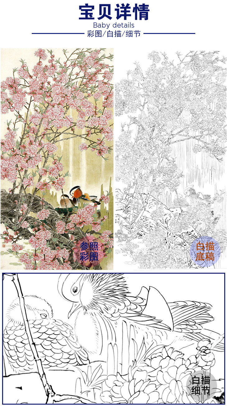 竖幅工笔花鸟白描底稿-周彦生-鸳鸯-LV01