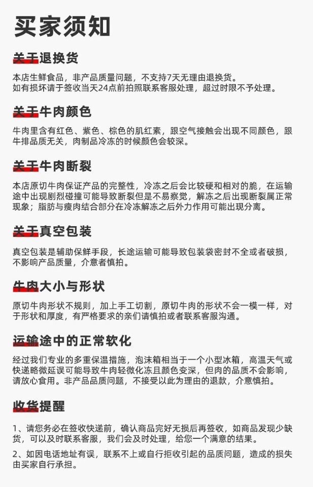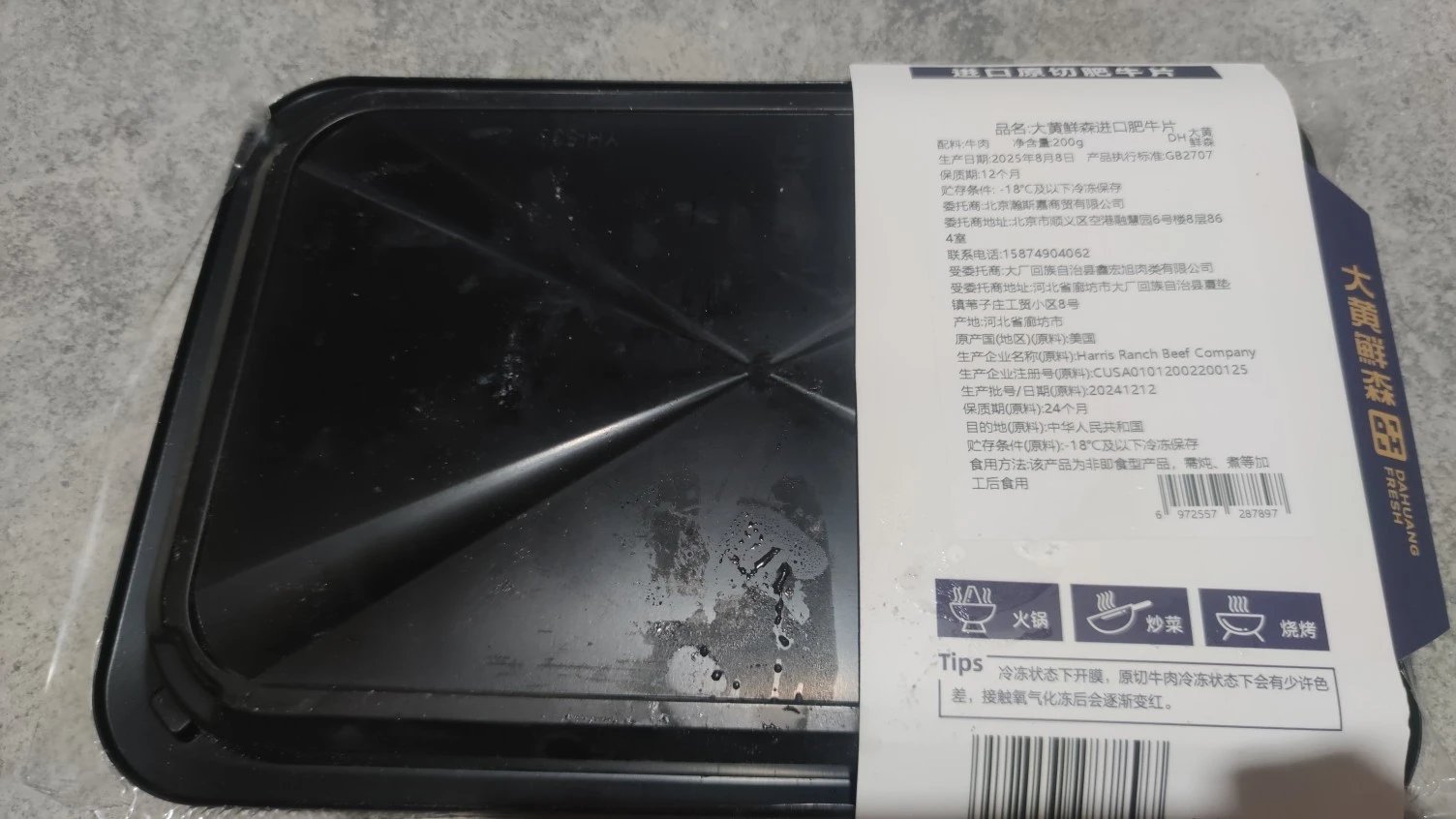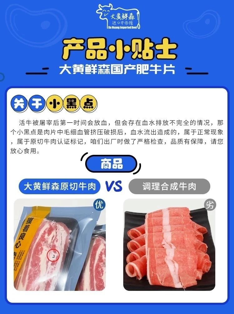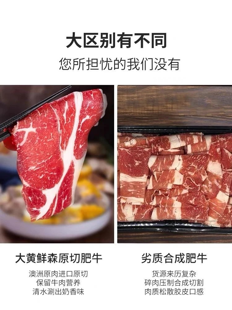 【团品】大黄鲜森进口原切安格斯谷饲200天肥牛片 【规格】200g*6盒 【发货地】河北 【日期】2025.8月随批次更新 【保质期】12个月 【保质期】365天 【储存方式】 -18 冷藏 【配料表】牛肉 【发货地】长沙/济南仓随机发 【发货快递】顺丰 【发货时间】下单后48小时内(遇节假日顺延) 【不发货区域】新疆、西藏、青海、海南、港澳台及快递停发地区以实际打单为准 (注:肥牛会因每头牛肥瘦不一样,或解冻方式不一样,色值或有所不同,太肥太瘦的我们都会挑出!肥瘦比例均为2:8/3:7正常比例内,介意慎拍。) 签收后第一时间放冷冻保存 遇箱子破损问题请在签收6小时内拍照 售后。 生鲜一经发出,不支持无理由拒收拦截撤单改地址。因运输碰撞导致的漏气、路途遥远导致的轻微软化,都属于正常现象,不在售后范围,可放心食用。
