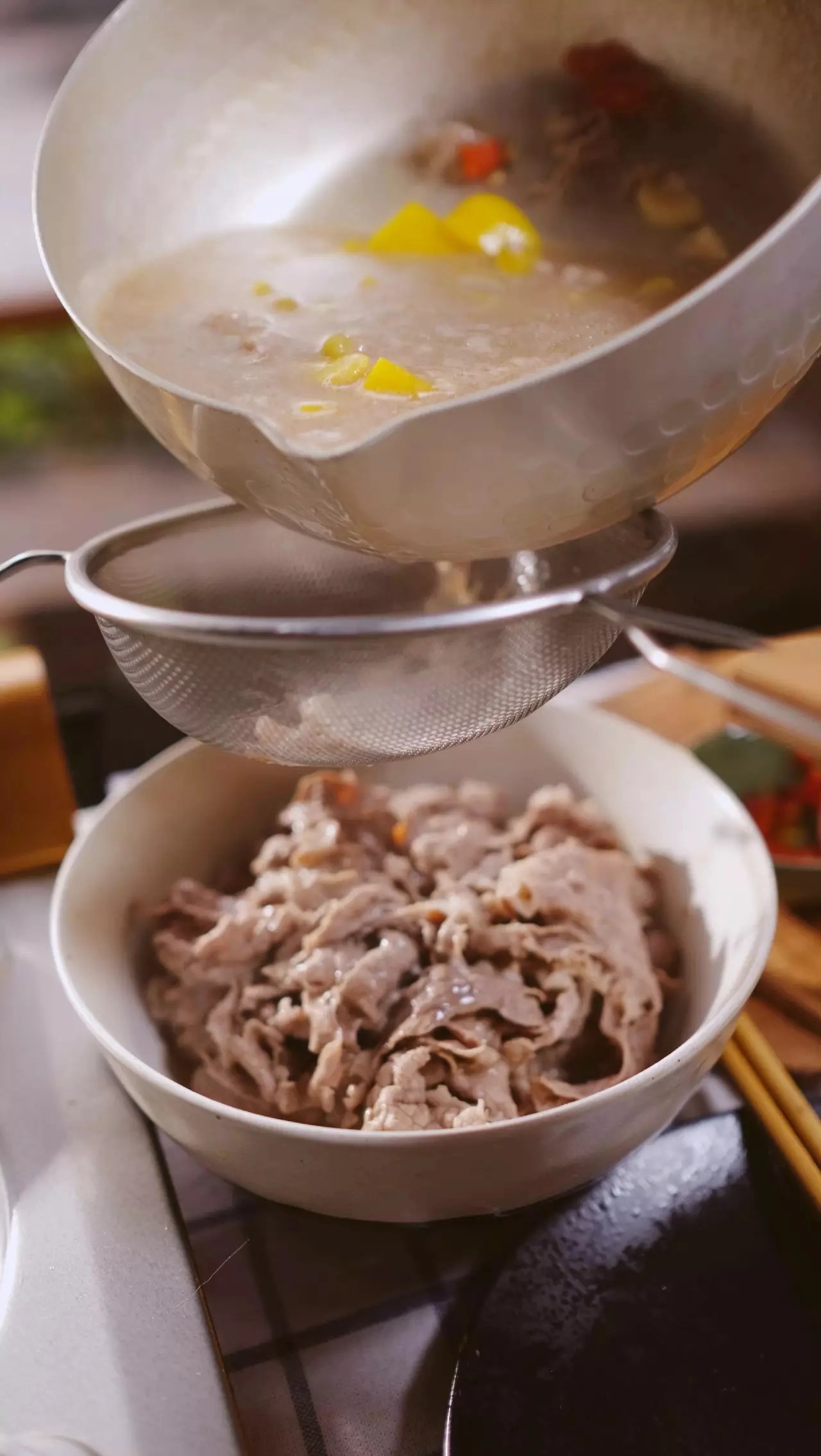 没有什么事是一碗酸汤肥牛无法解决的 做个酸酸辣辣的肥牛吃 一口气能干掉三大碗米饭。 也不用觉得负罪,可以自我安慰说是在提前贴秋膘。