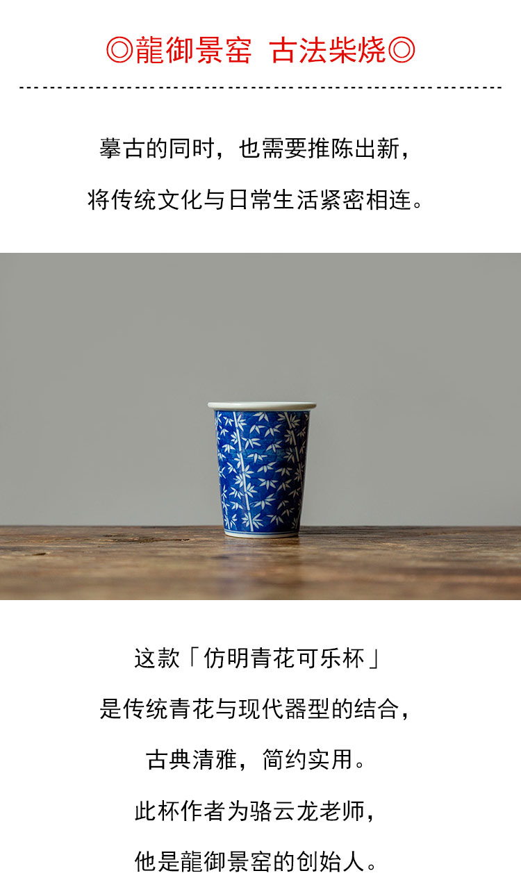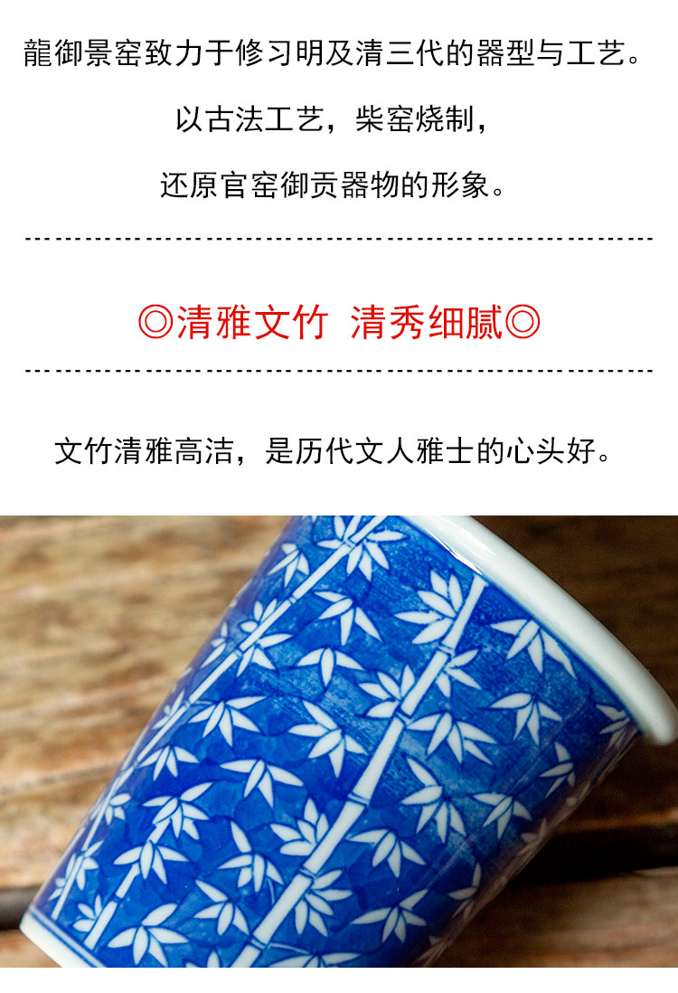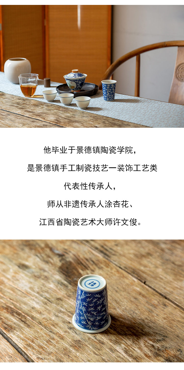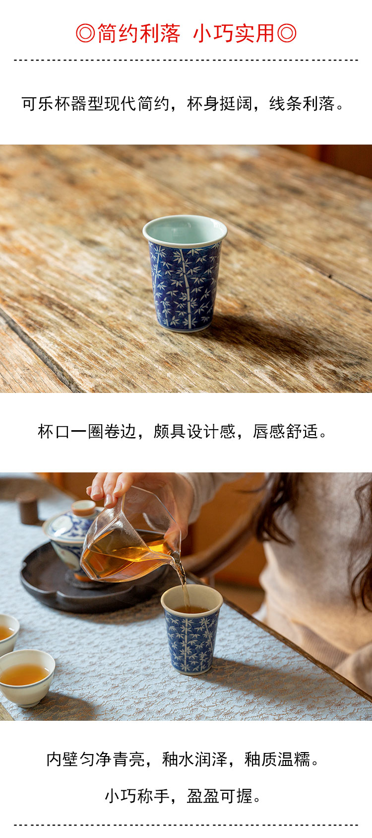 茶香记 景德镇手绘青花文竹可乐杯80ml手工陶瓷茶杯主人杯咖啡杯