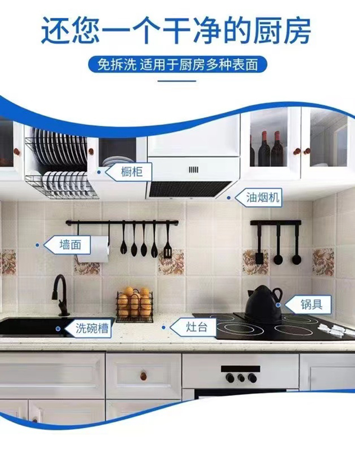任何常年油污积攒的重灾区!喷上之后,静待5分钟左右… 油脂全都被分解溶化!使用海绵轻轻一擦,任何物品立刻干净如新…