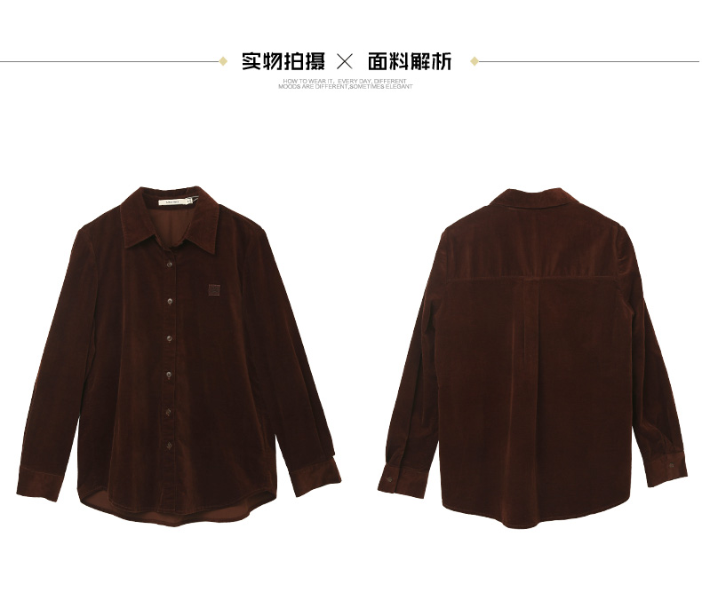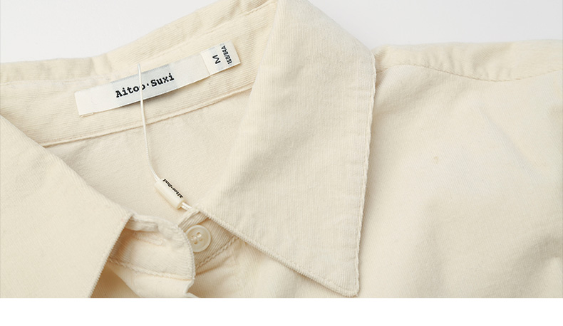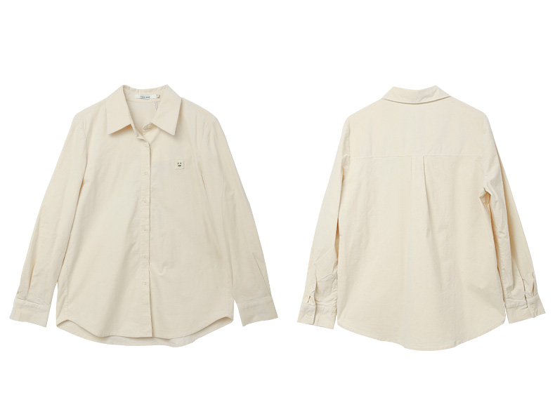 2025 秋冬米白色宽松长袖衬衫女 简约翻领趣味小标装饰休闲通勤显瘦垂感棉质衬衣