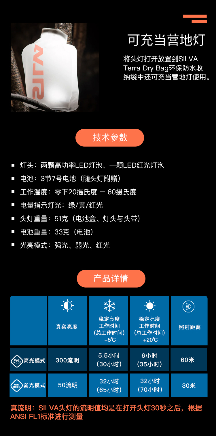 新款瑞典加强版增亮超轻头灯SILVA Scout 3X男女越野跑户外徒步露营旅行智能照明防水头灯