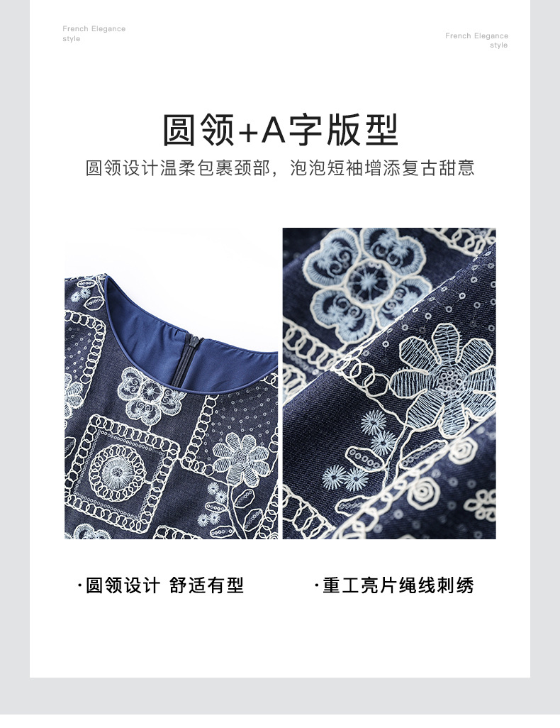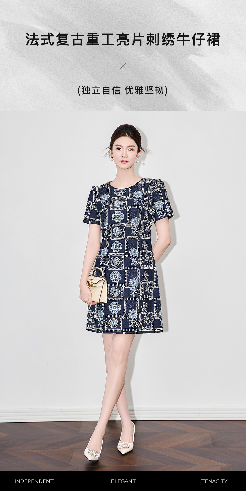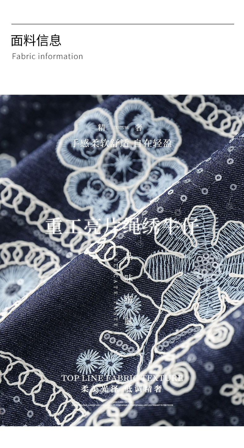 「高货wl」全新升级【铂金会员330/天猫439/差价109】(94435)洛诗琳法式重工亮片刺绣连衣裙2025夏季修身时尚牛仔裙女