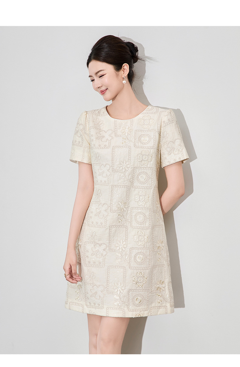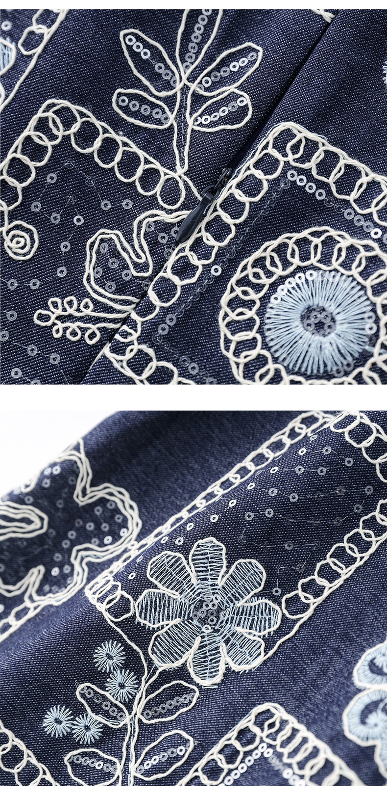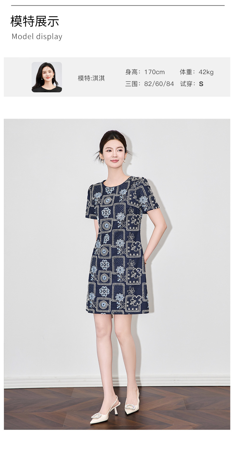 「高货wl」全新升级【铂金会员330/天猫439/差价109】(94435)洛诗琳法式重工亮片刺绣连衣裙2025夏季修身时尚牛仔裙女