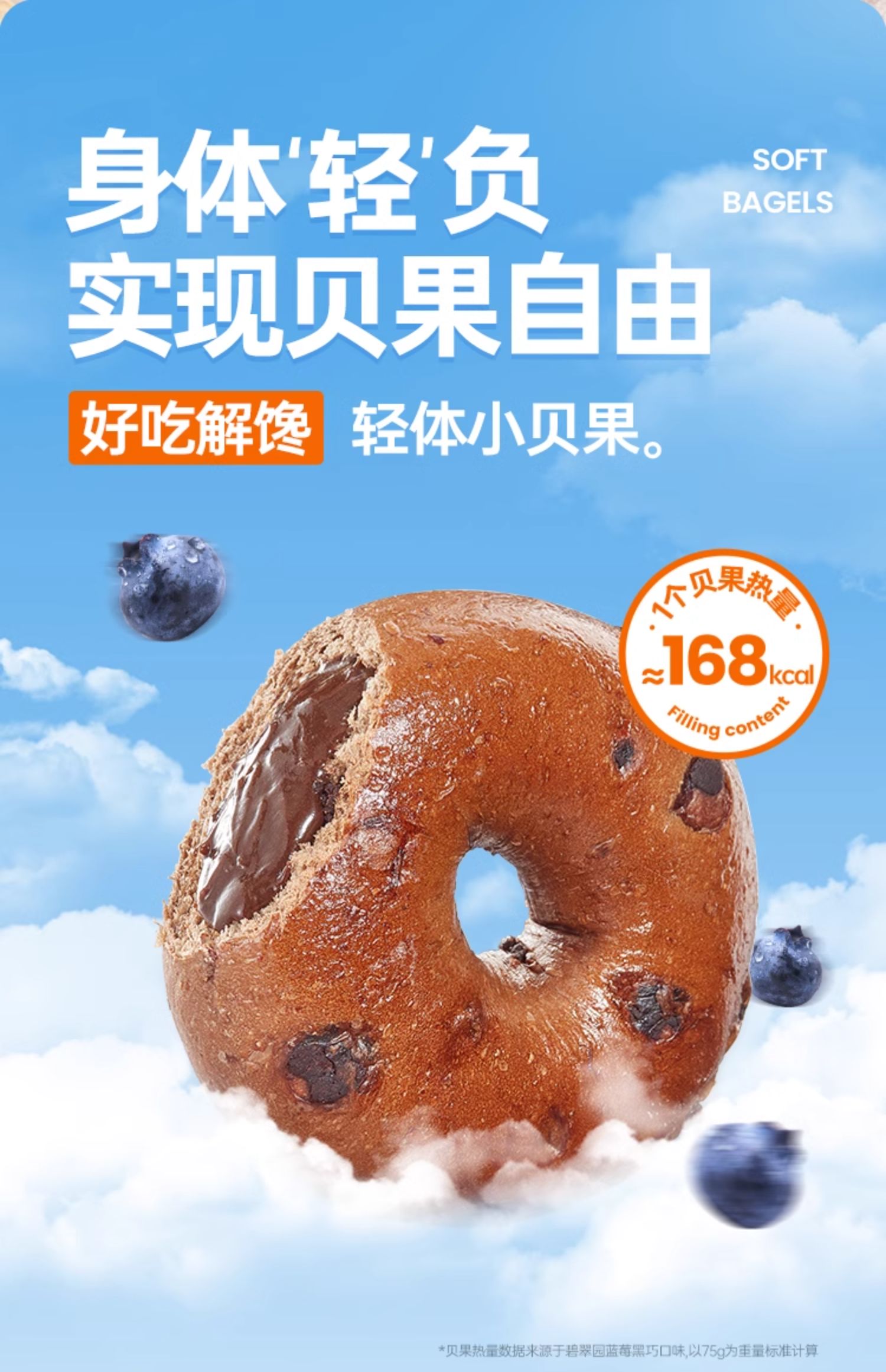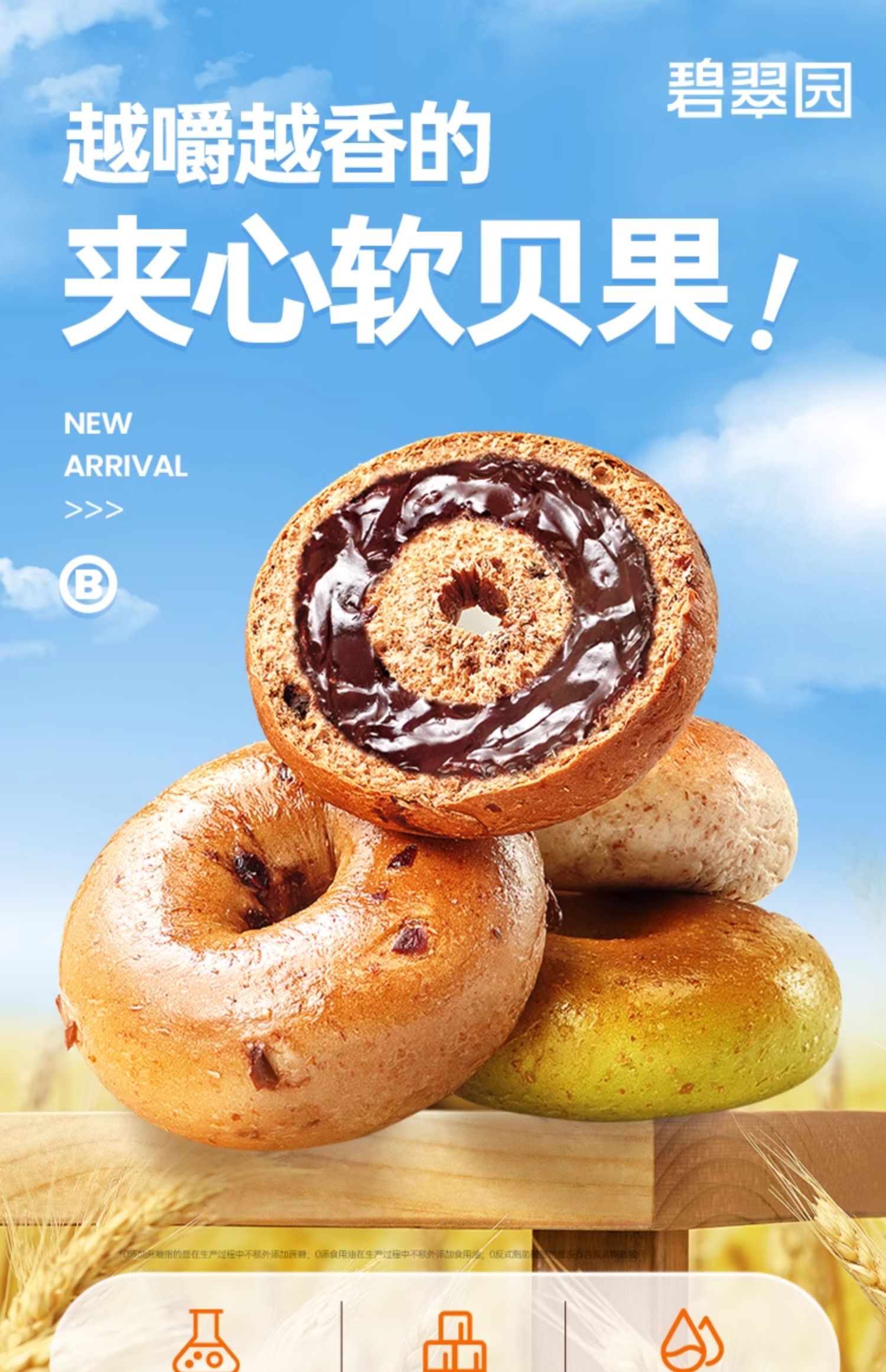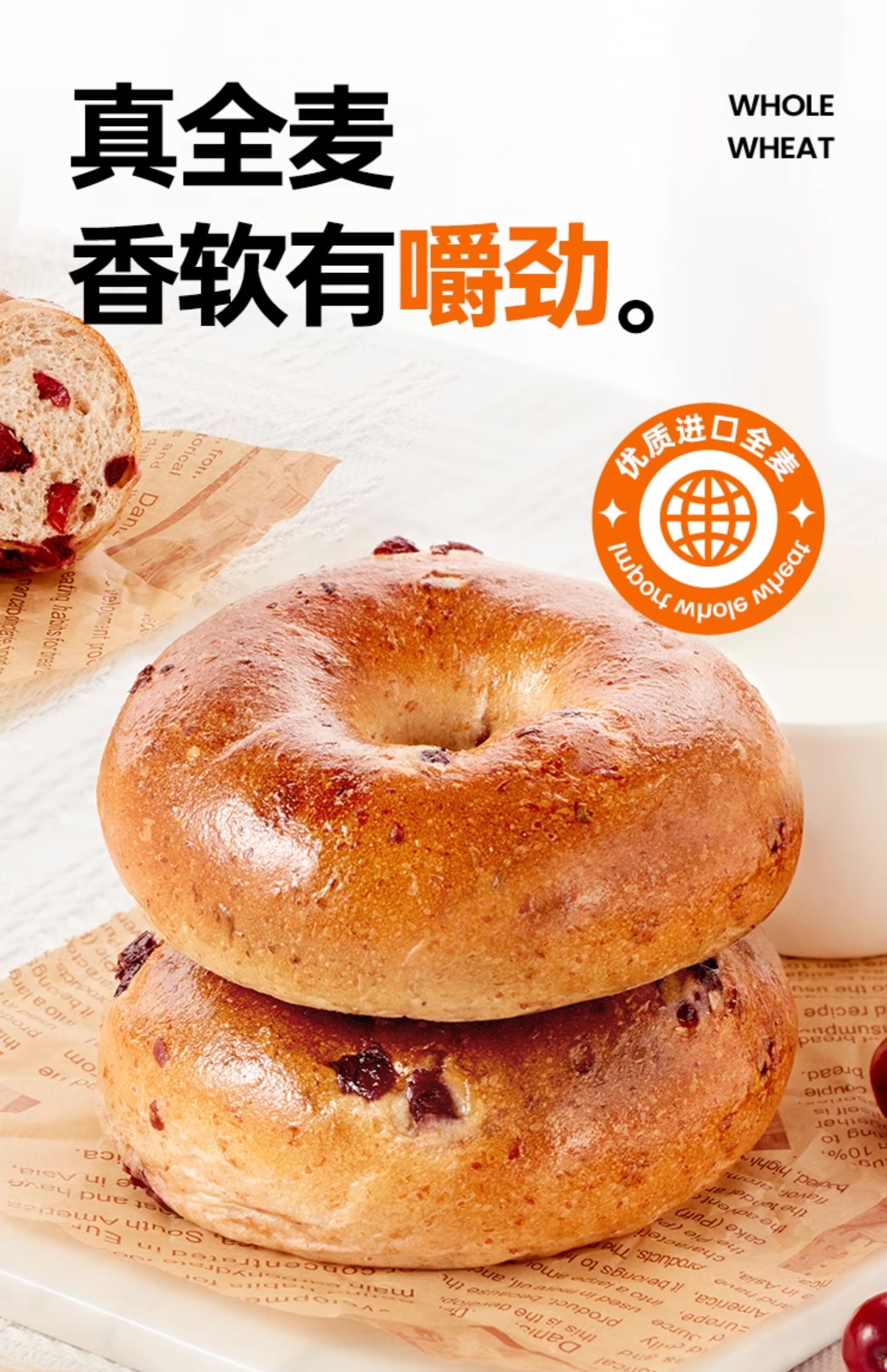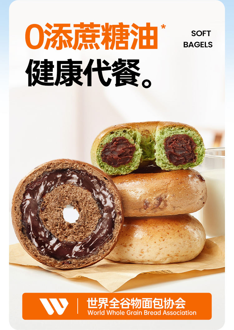 【越嚼越香的夹心软贝果!】碧翠园全麦贝果低脂早餐面包 整箱代餐饱腹粗粮食品 巧克力夹心欧包-QQ