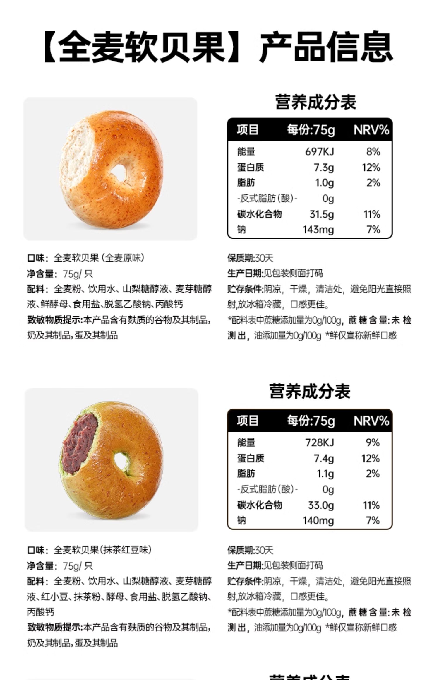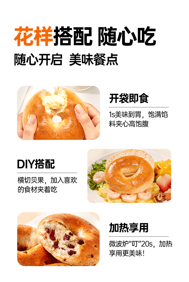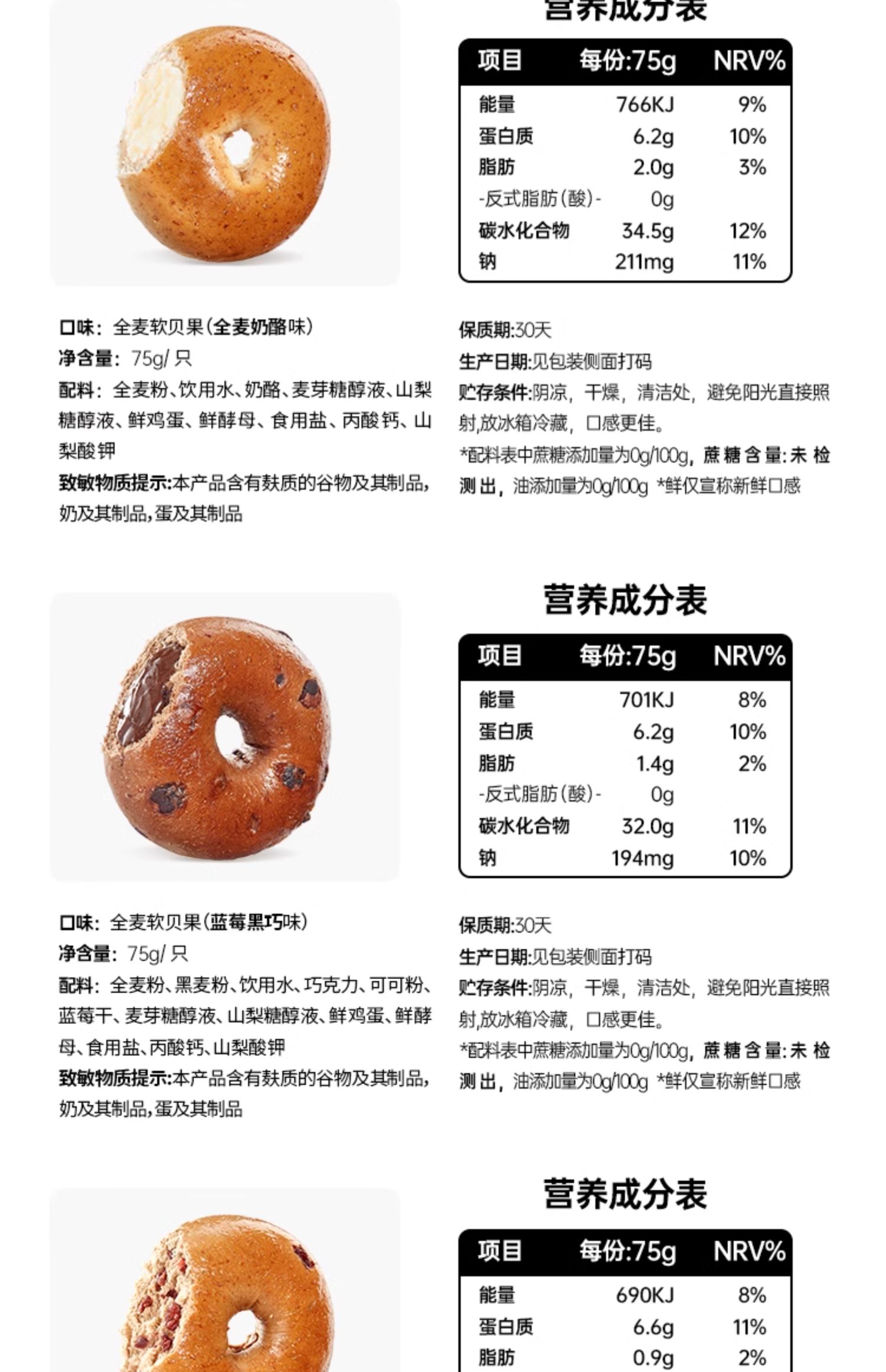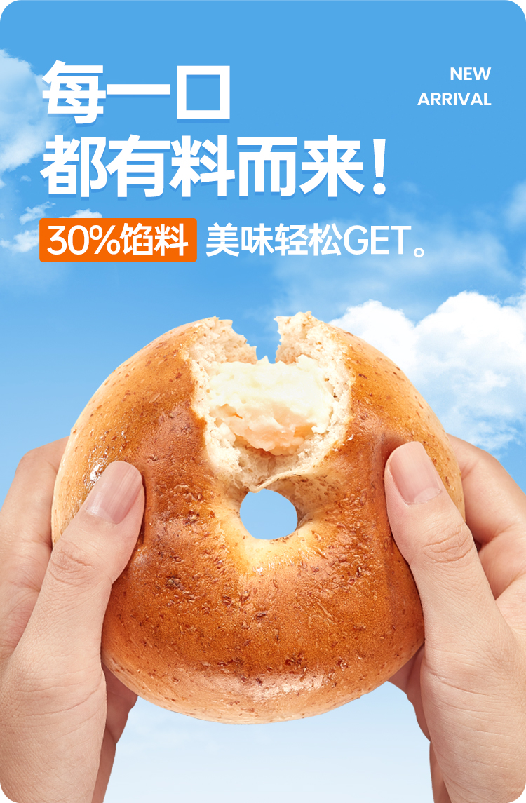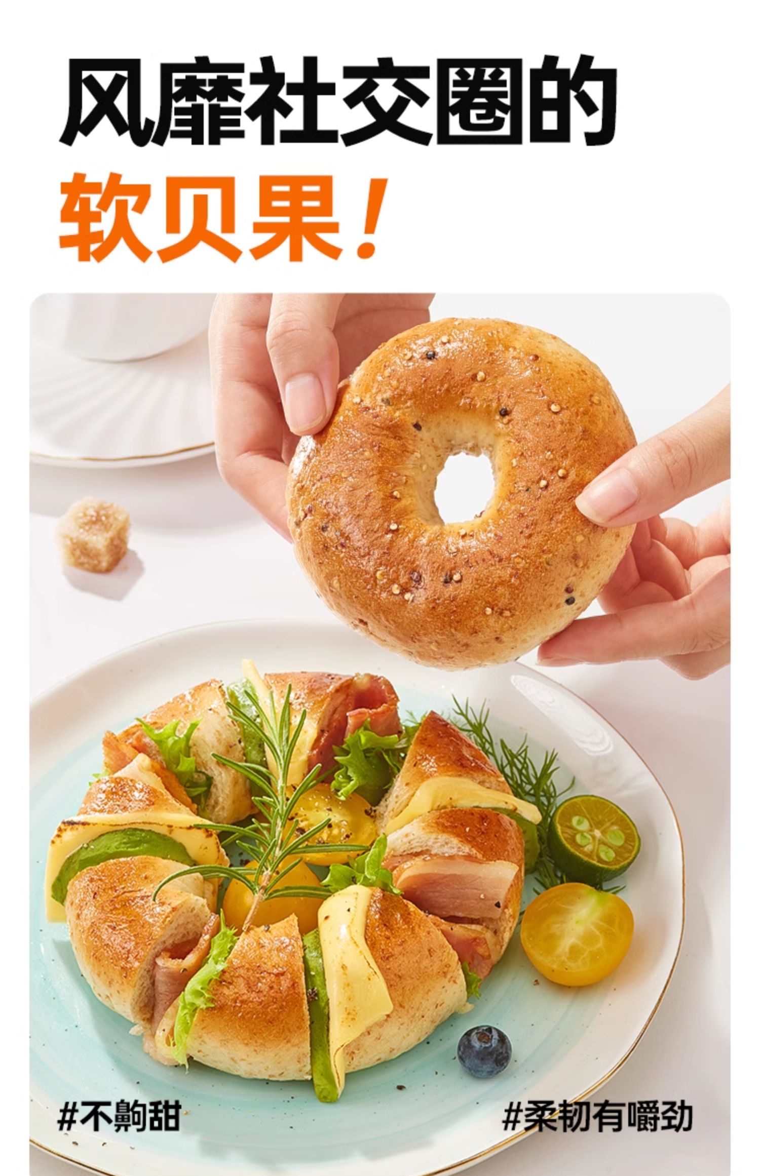 【越嚼越香的夹心软贝果!】碧翠园全麦贝果低脂早餐面包 整箱代餐饱腹粗粮食品 巧克力夹心欧包-QQ