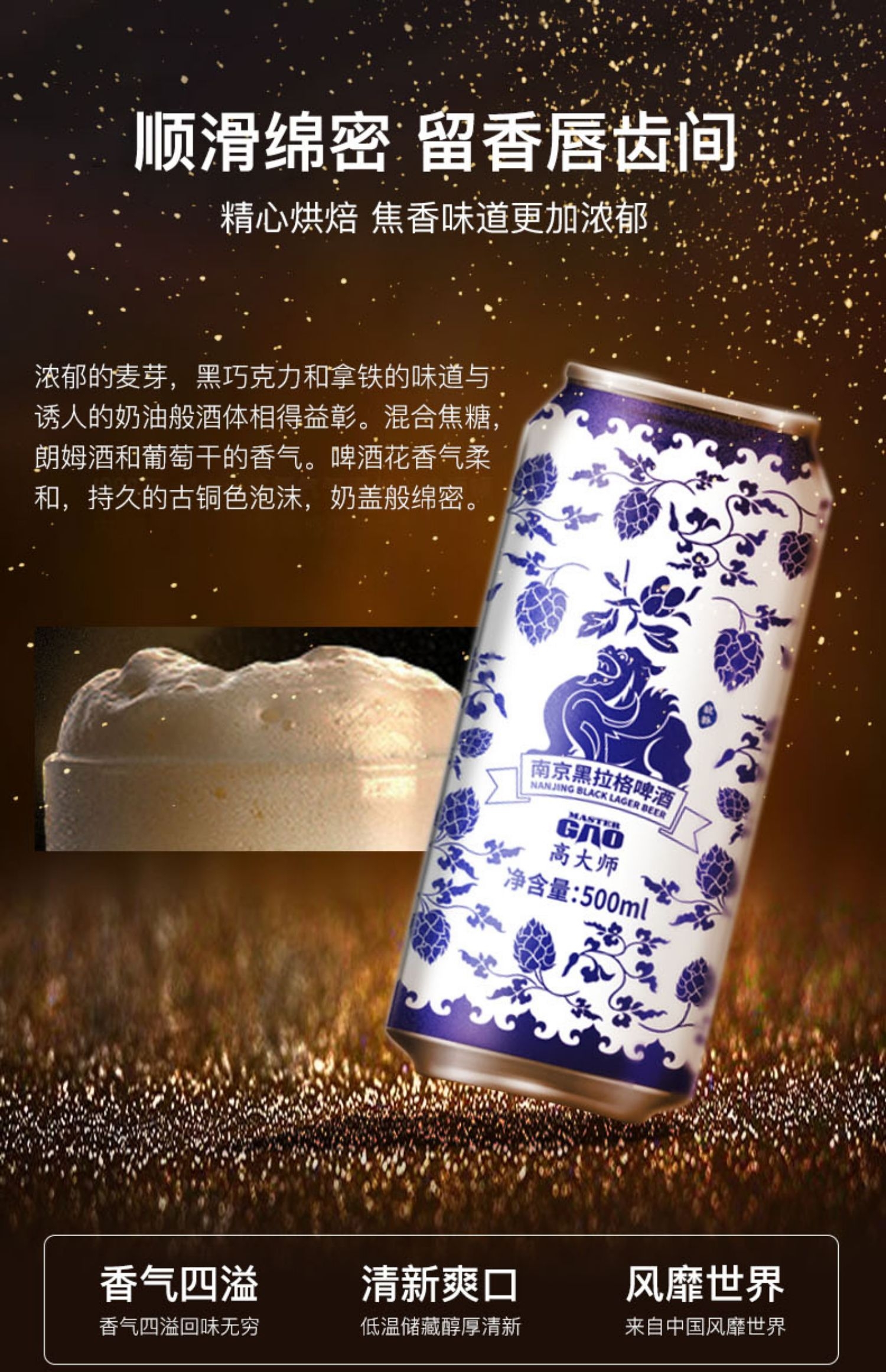 高大师国产精酿南京黑啤酒全麦拉格巧克力风味500ml罐装整箱11P
