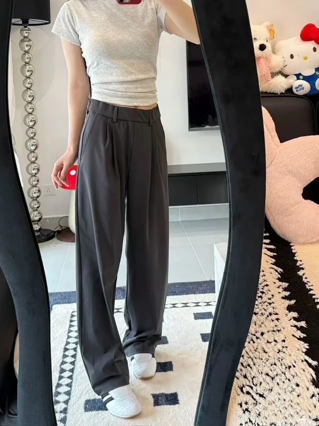 因为穿着真的很自在!面料丝滑垂挺有弹力皮筋腰 对肚子也毫无压迫感而且显得腿又长又直!