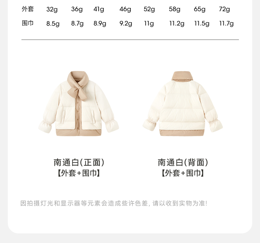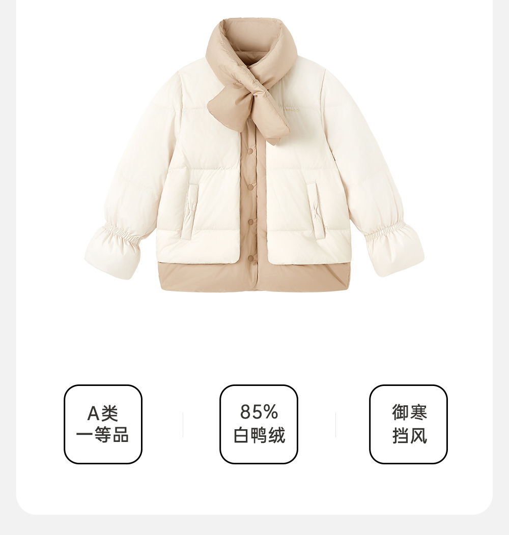 【商场同款】英氏儿童羽绒服冬季防风围巾保暖羽绒服外套新款超韧绒