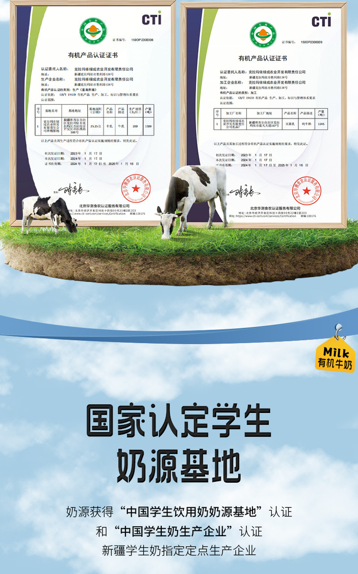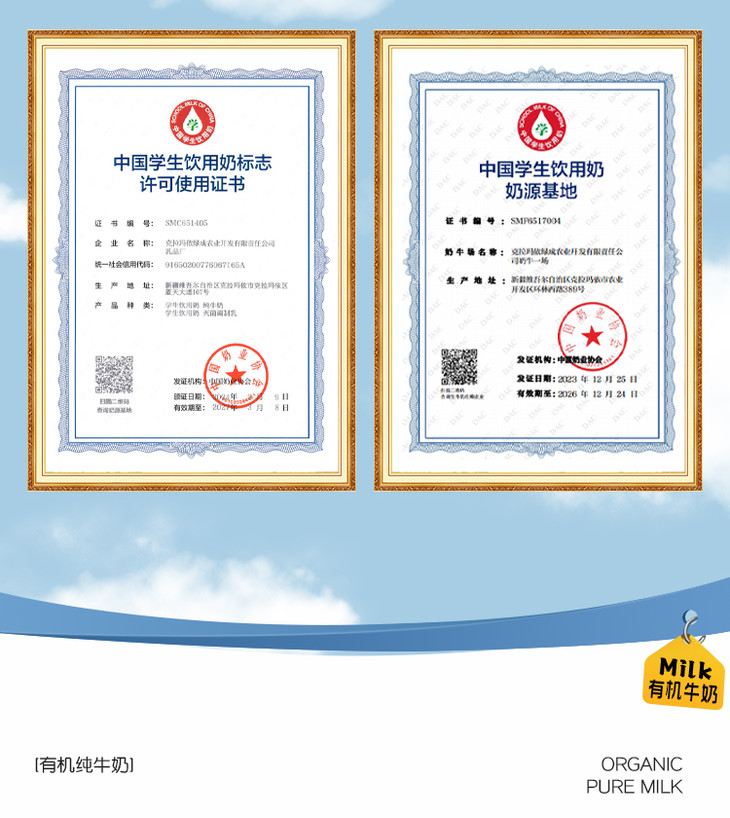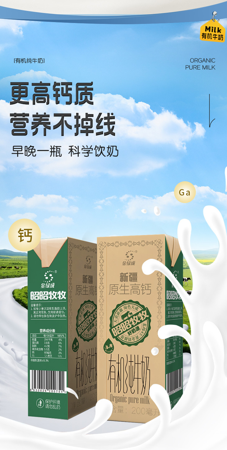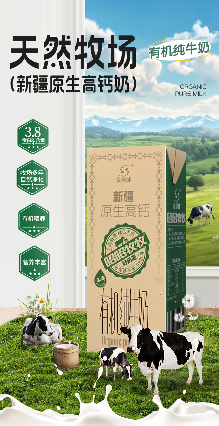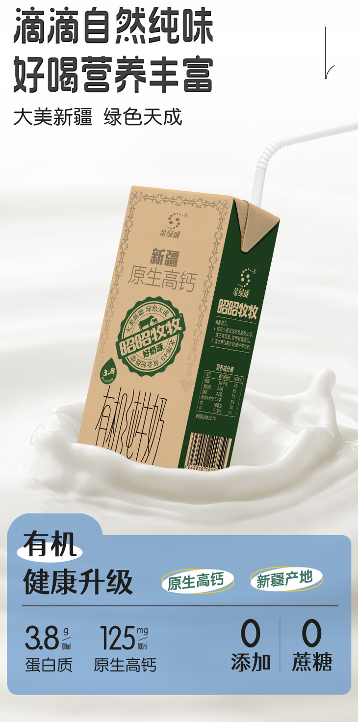 【品名】新疆昭昭牧牧3.8蛋白高钙有机纯牛奶