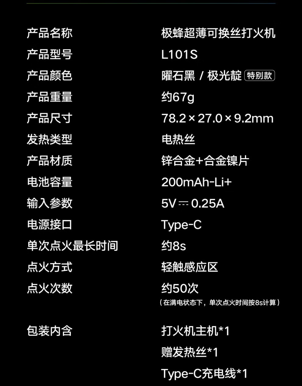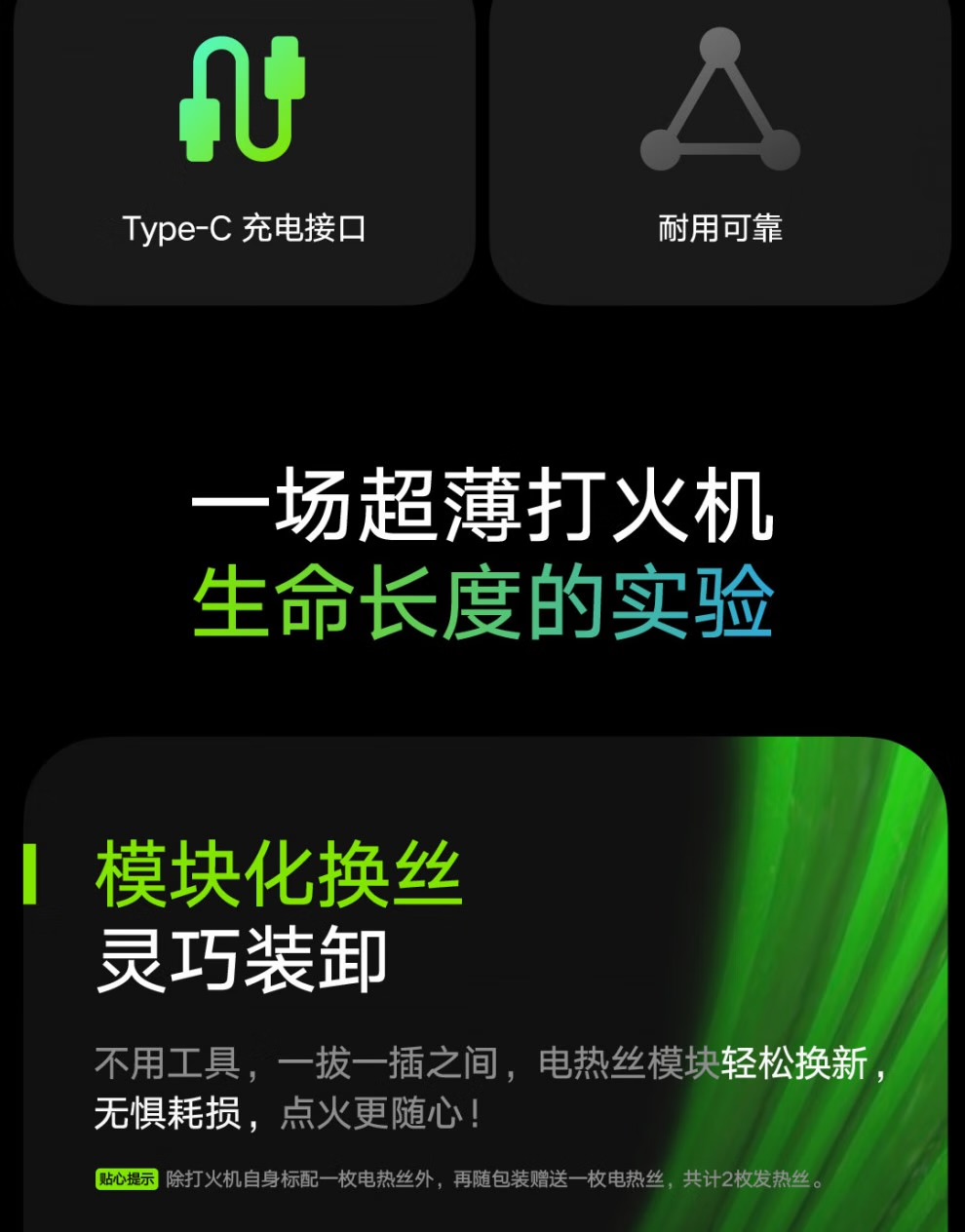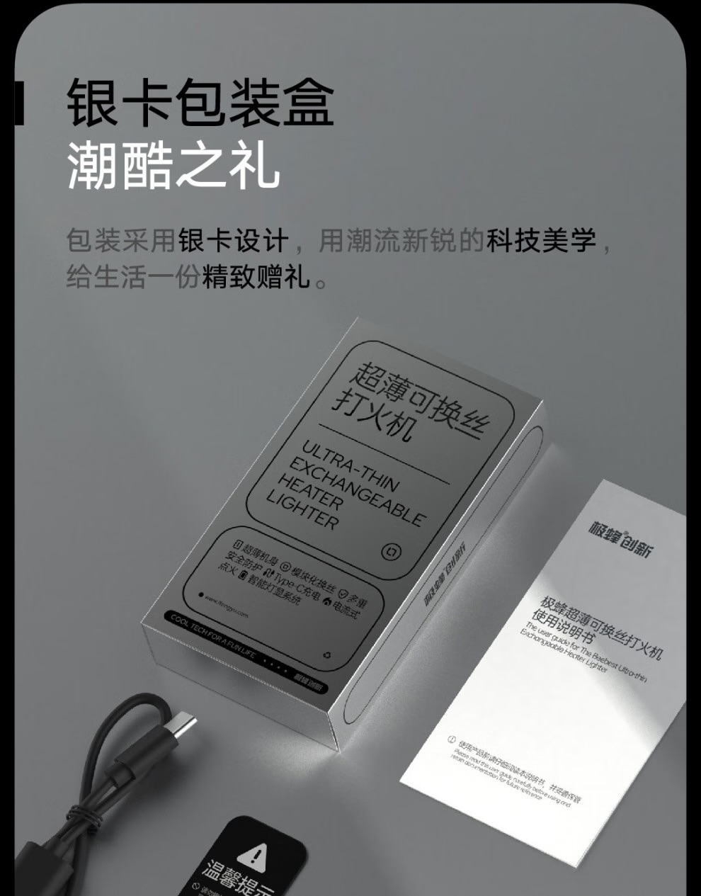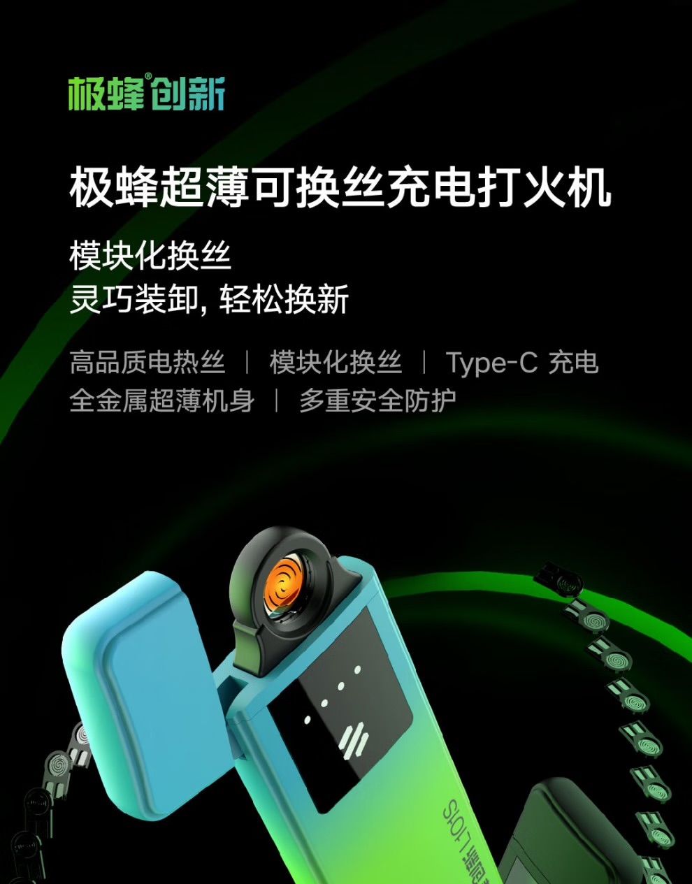 极蜂超薄可换丝打火机电弧防风便携男士安全无明火Type-C充电口