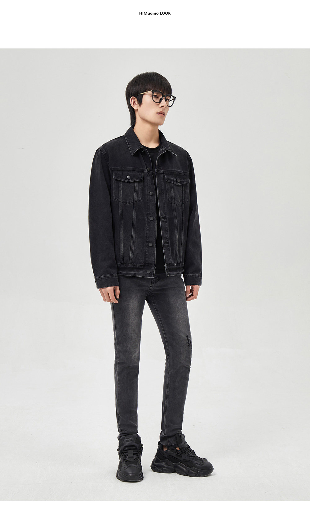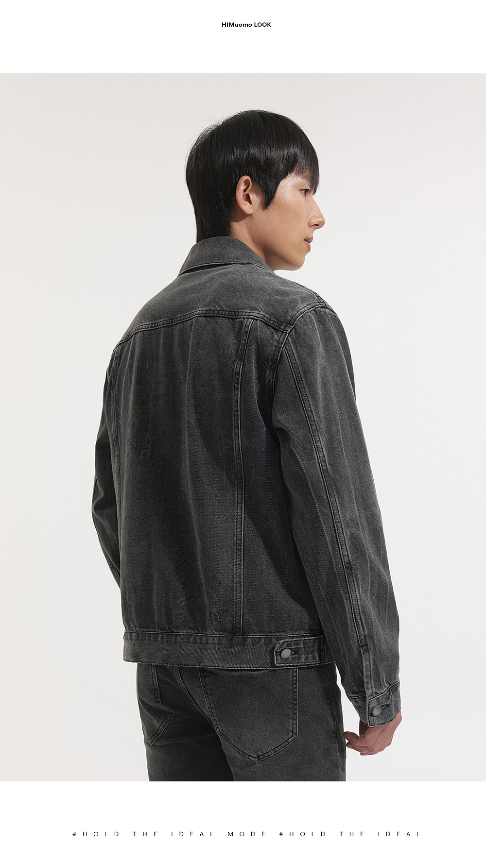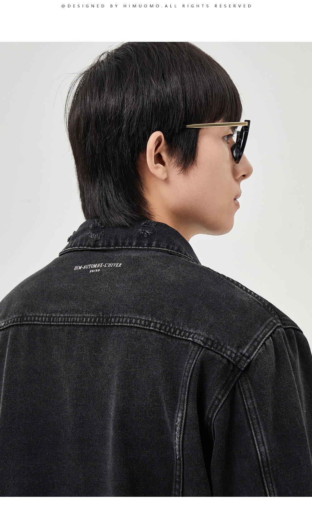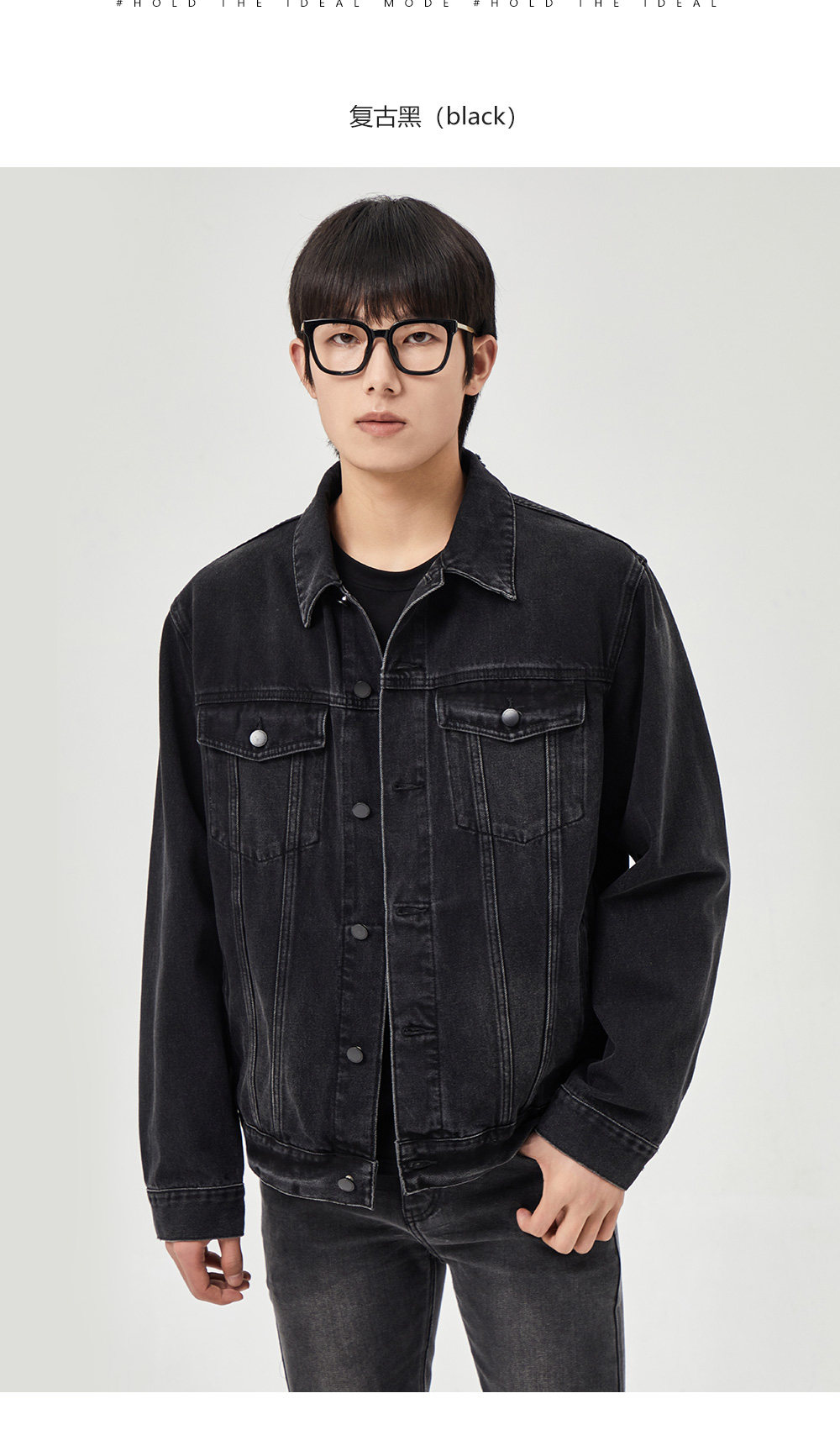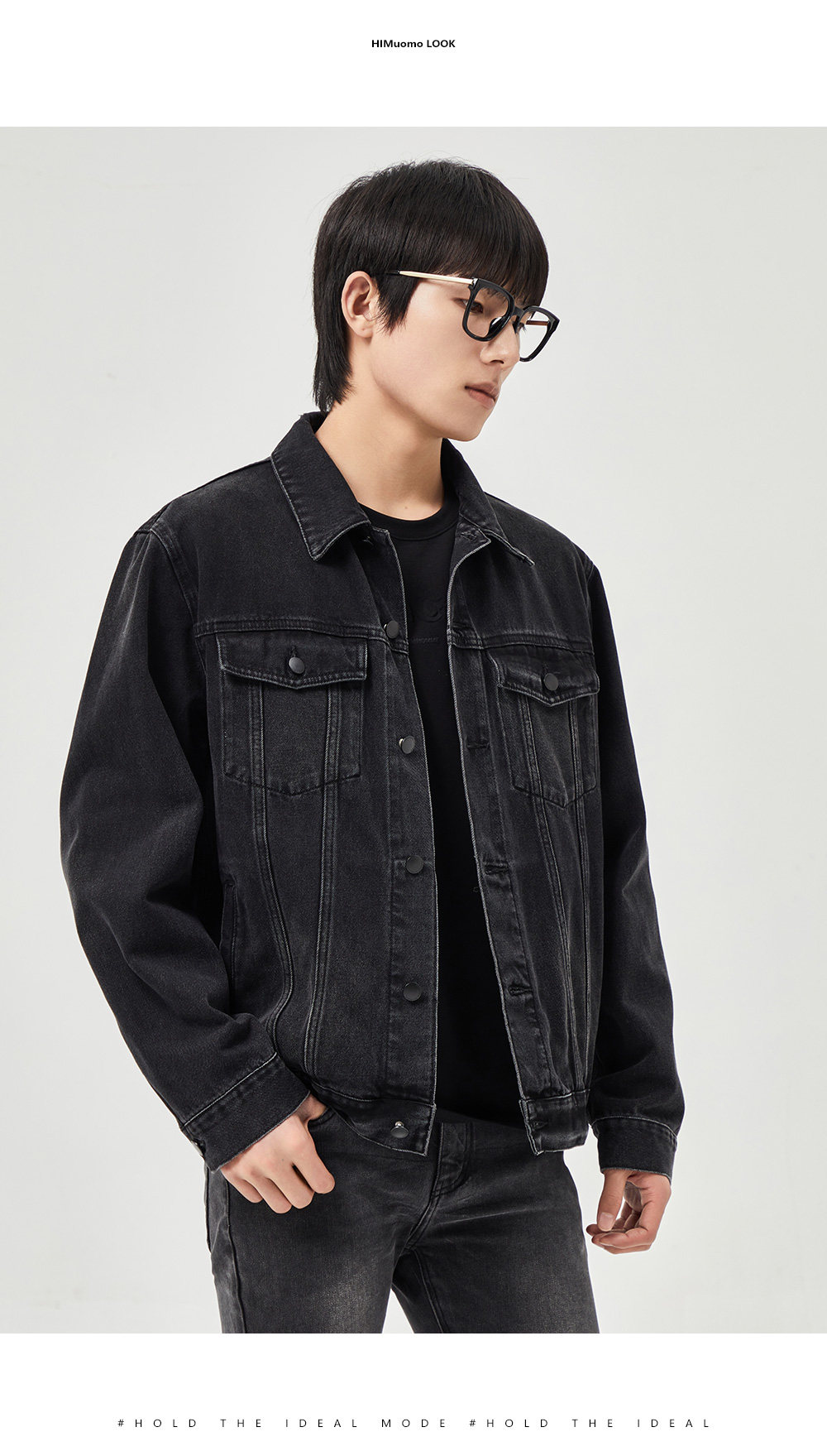 HIM漢崇 复古黑色牛仔外套港风休闲洗水单宁工装夹克男 2025秋季