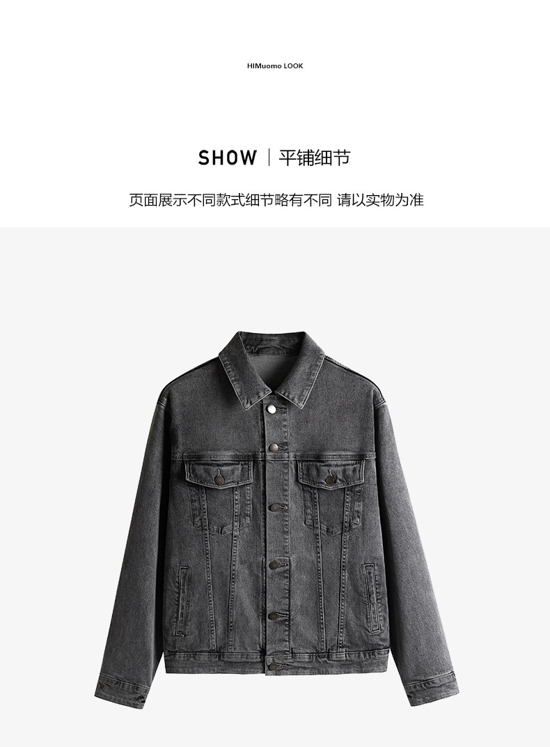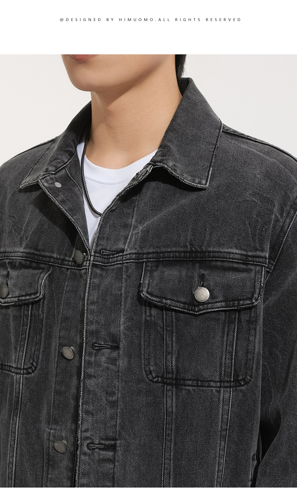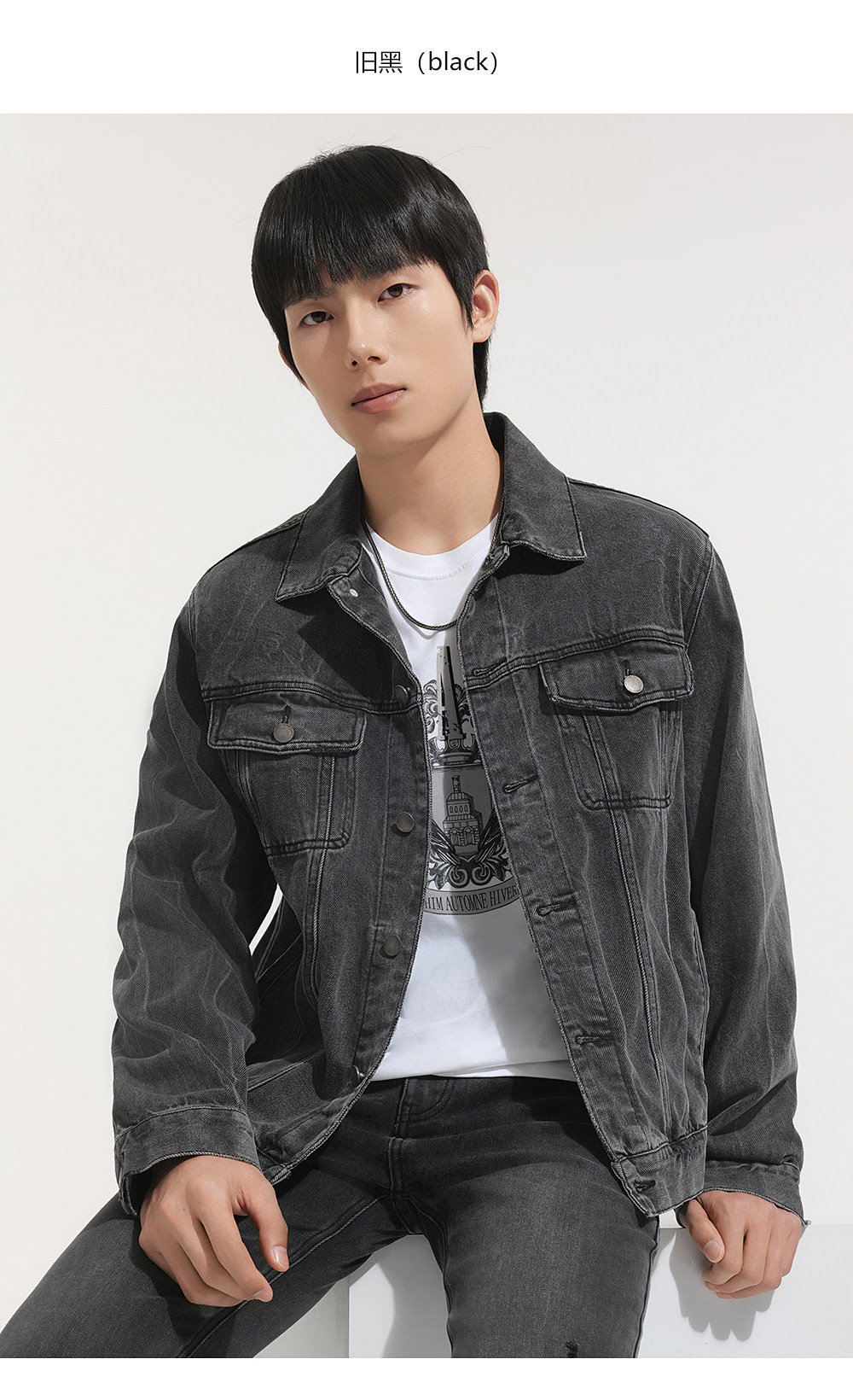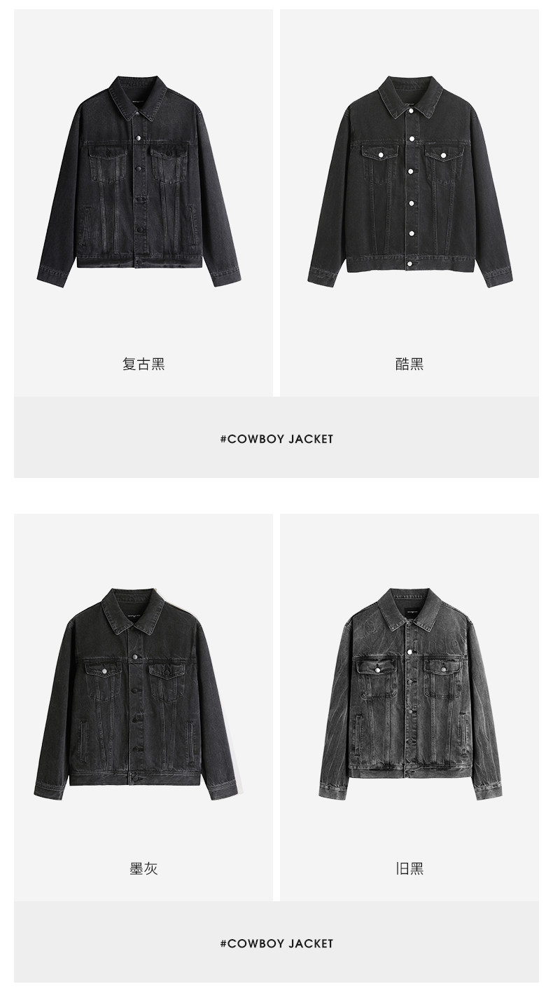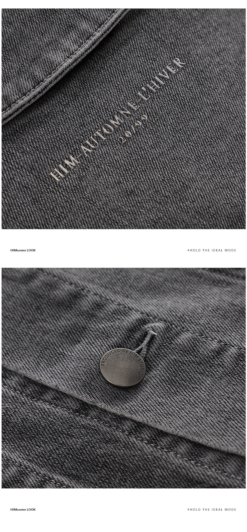 HIM漢崇 复古黑色牛仔外套港风休闲洗水单宁工装夹克男 2025秋季