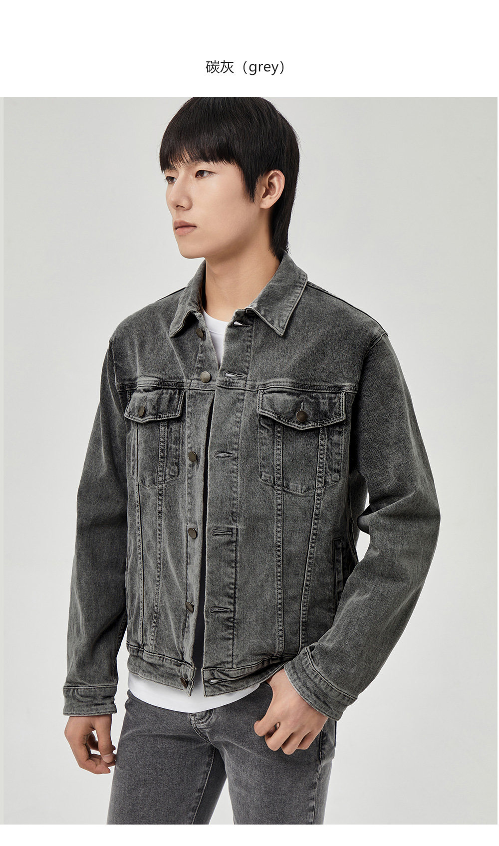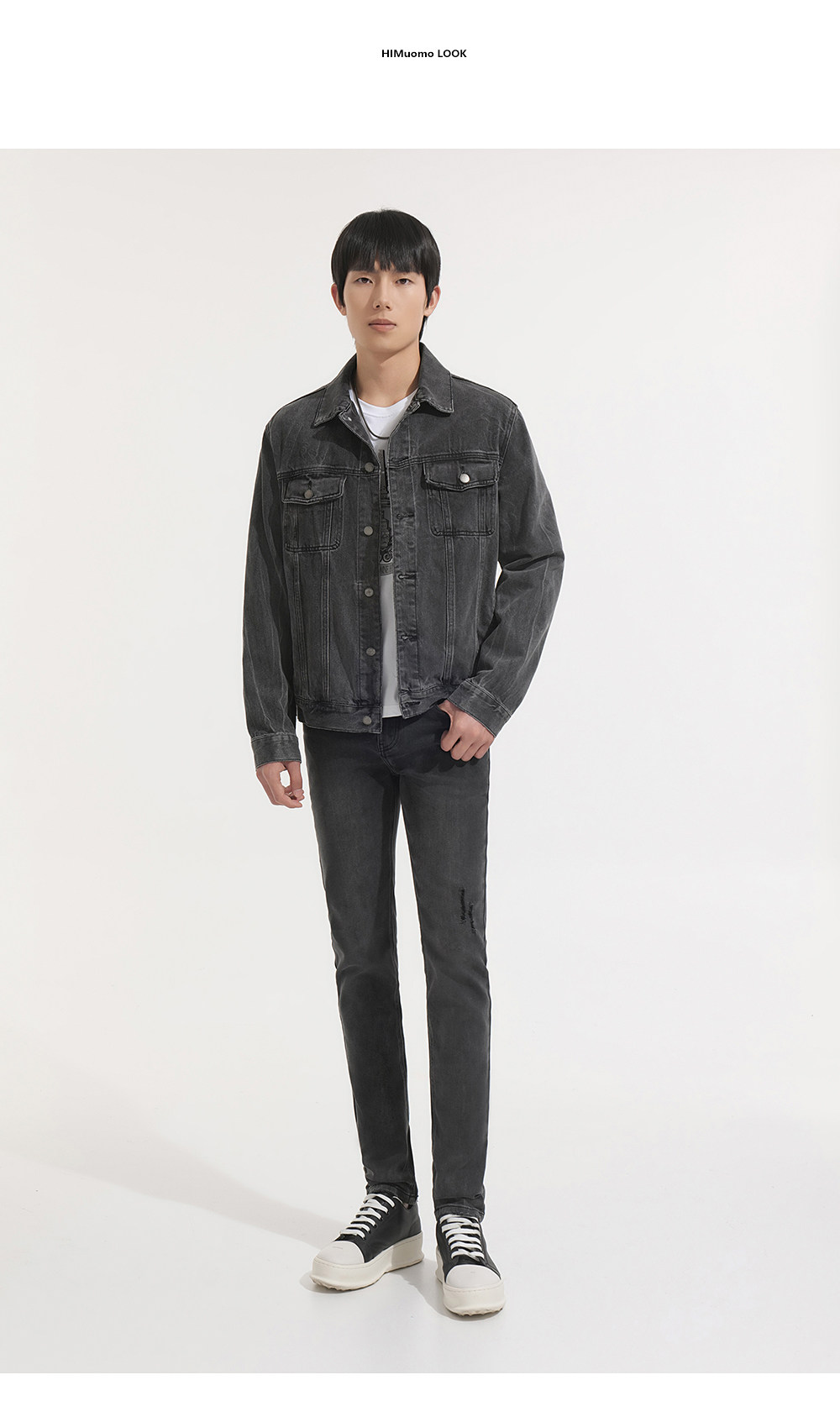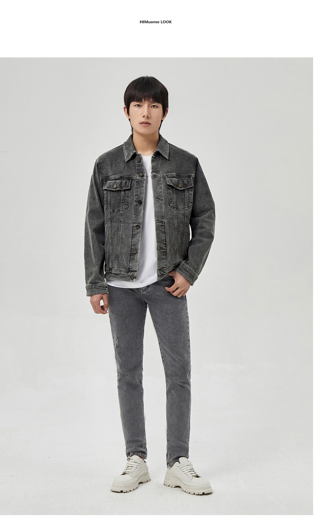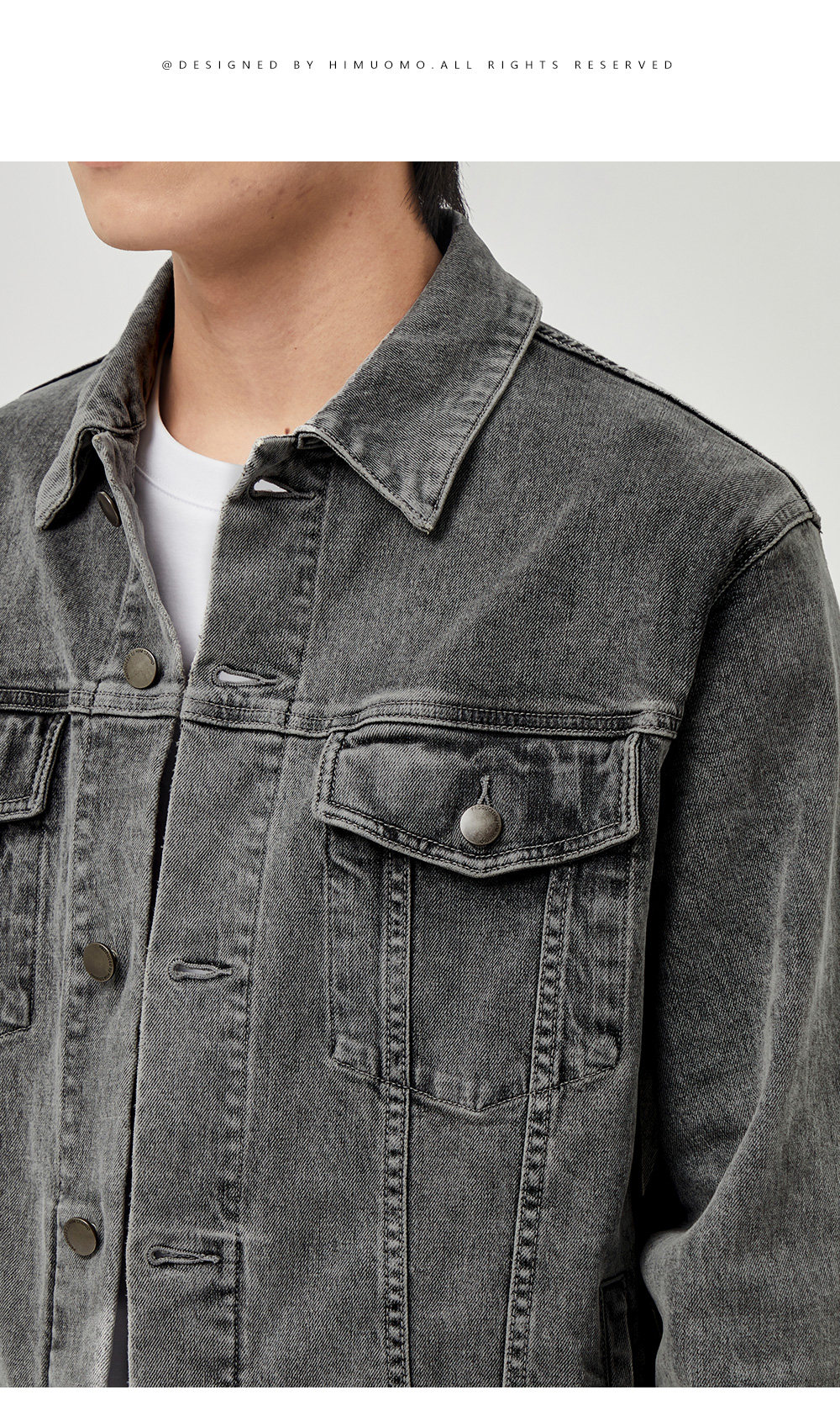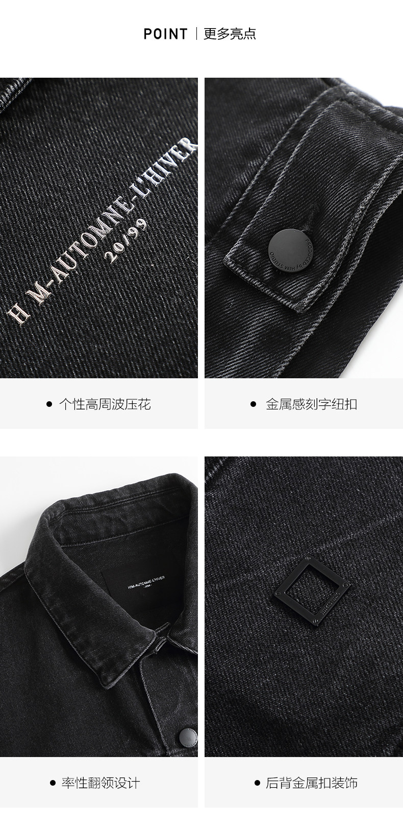 HIM漢崇 复古黑色牛仔外套港风休闲洗水单宁工装夹克男 2025秋季