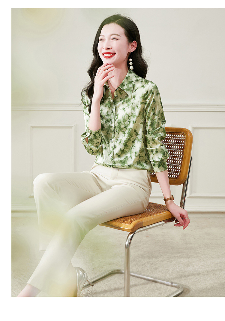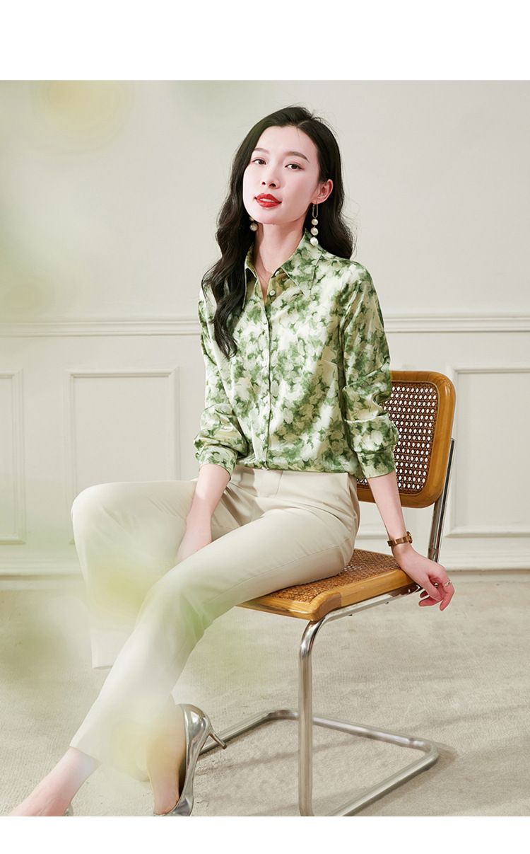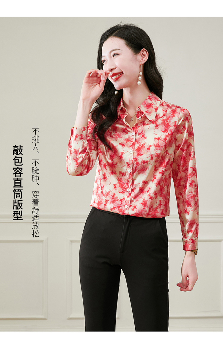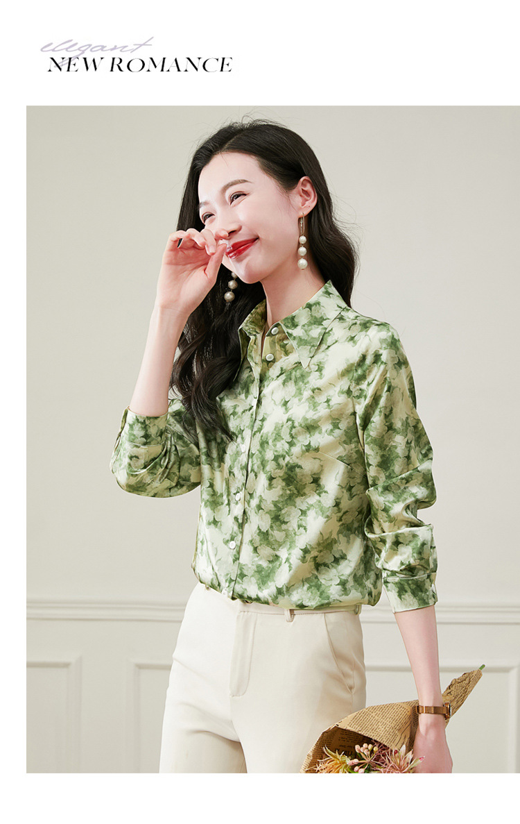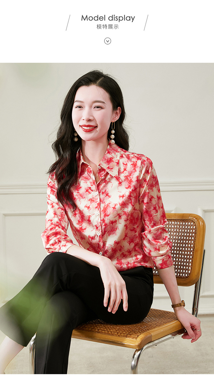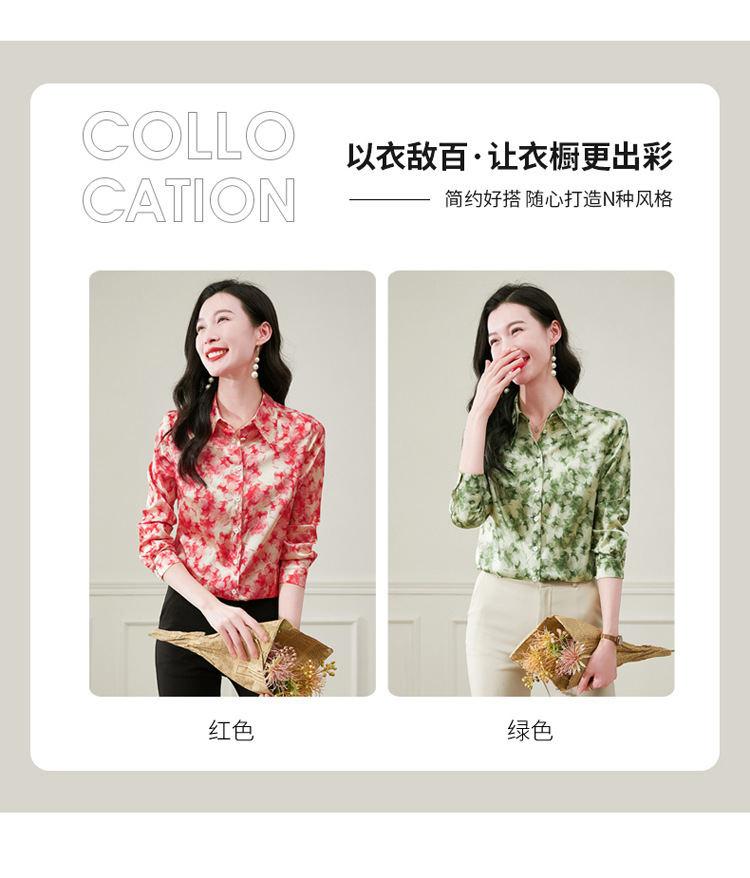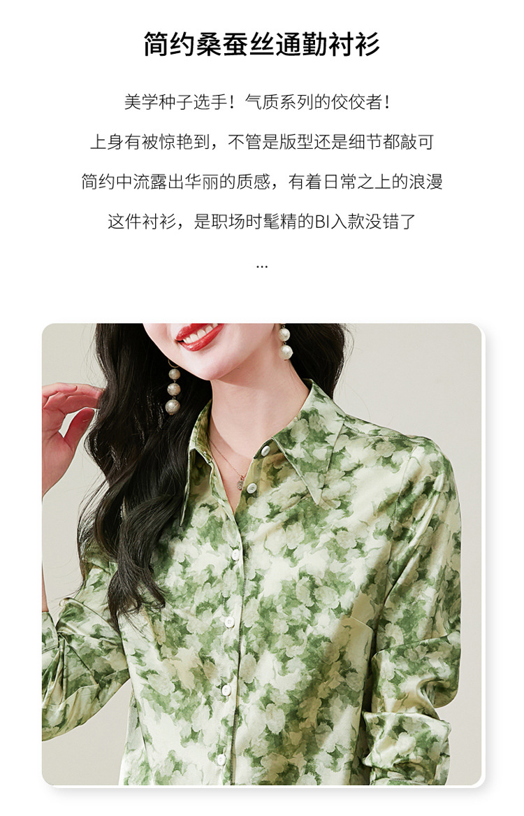 丁摩 19姆米重磅真丝衬衫女长袖印花气质高端桑蚕丝上衣3618