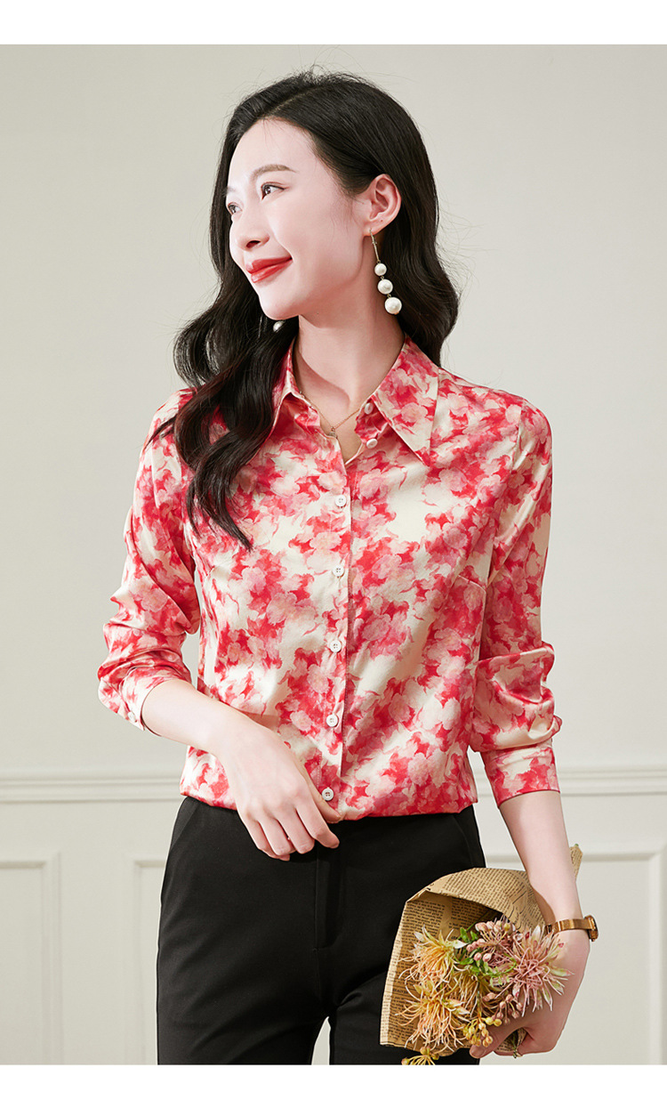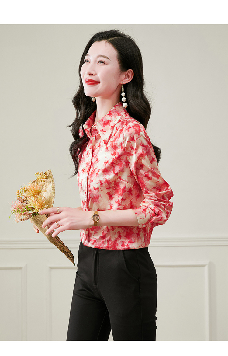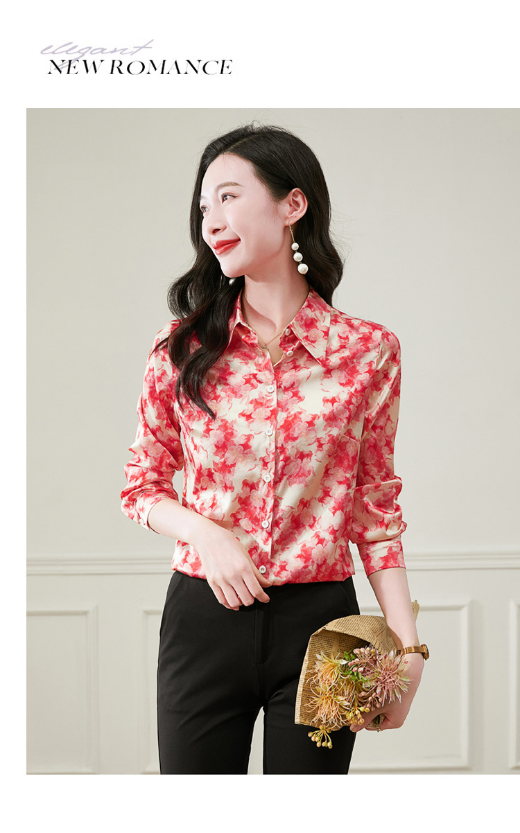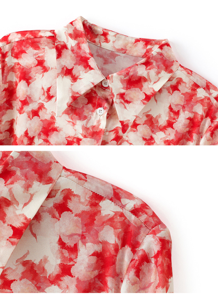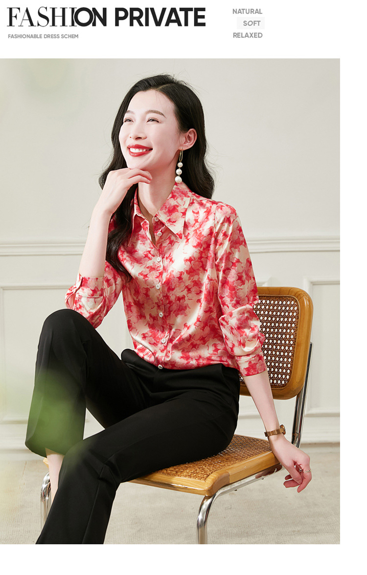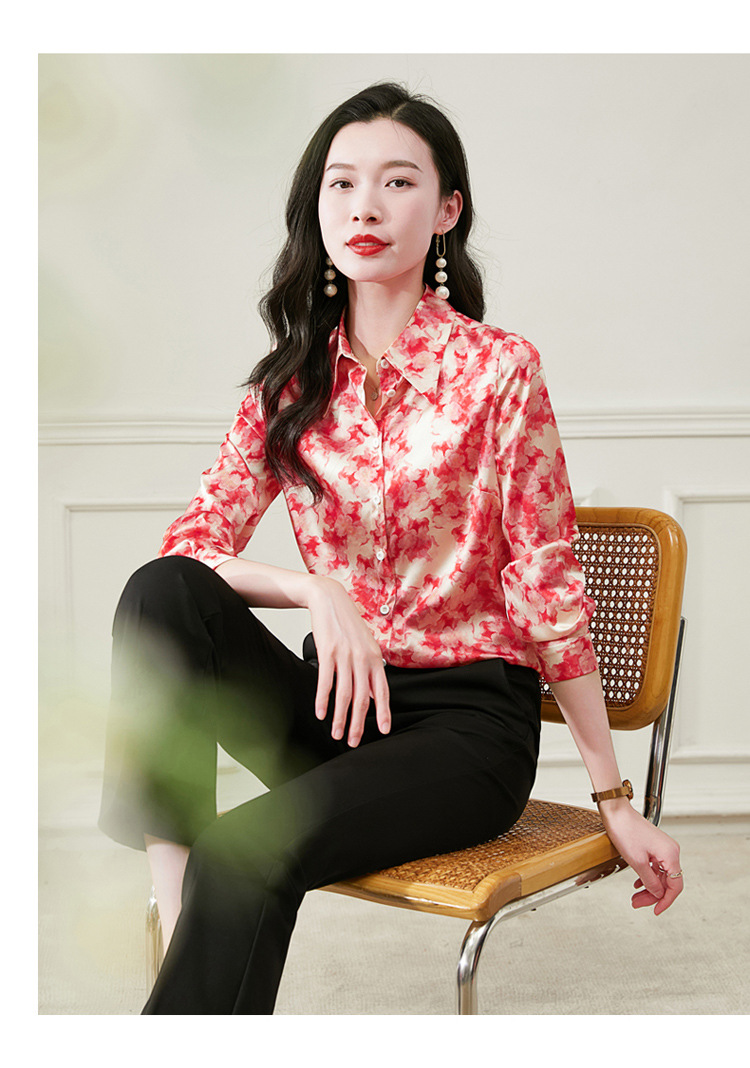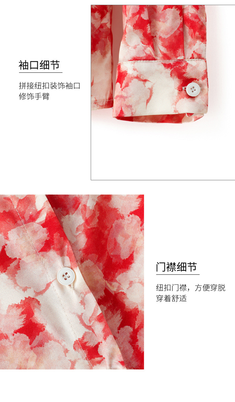 丁摩 19姆米重磅真丝衬衫女长袖印花气质高端桑蚕丝上衣3618