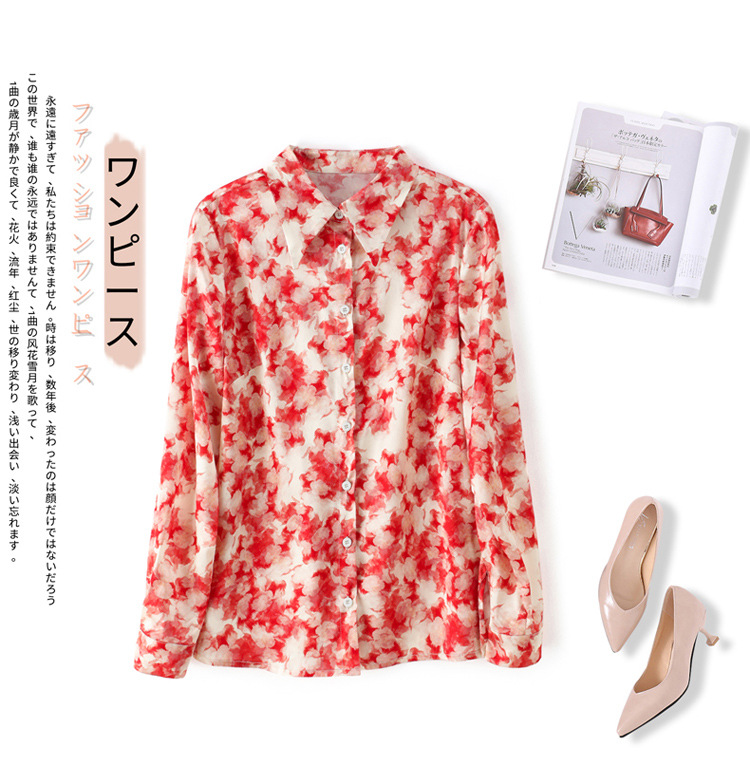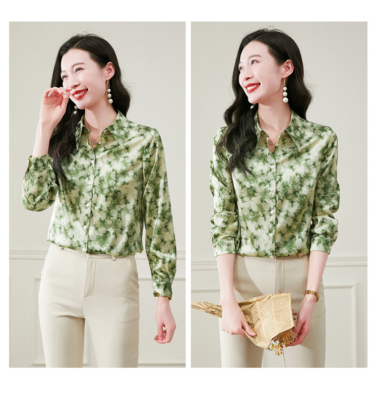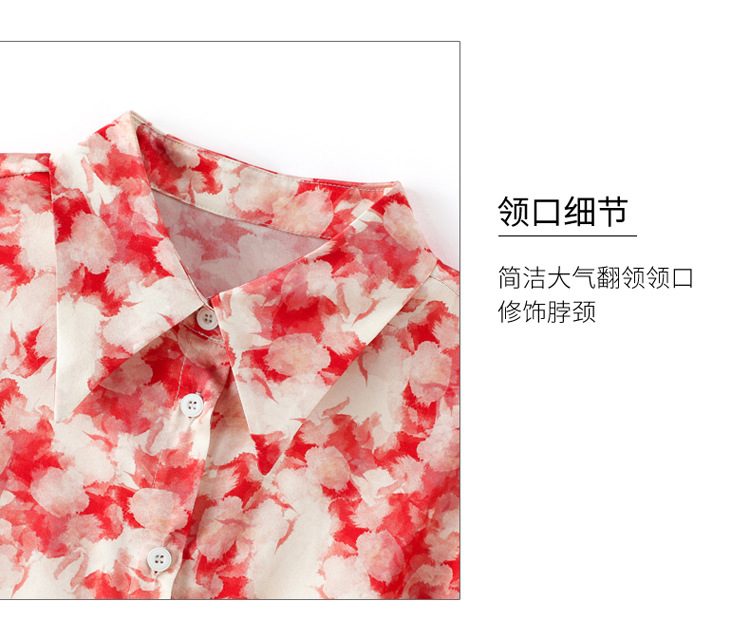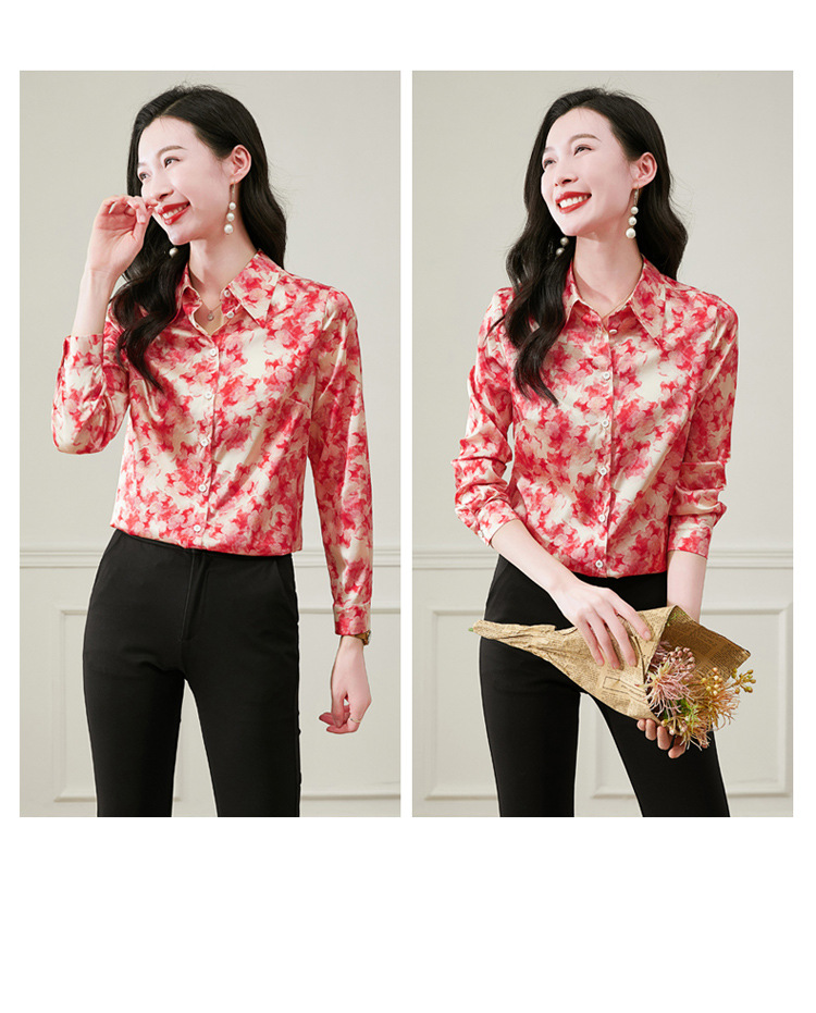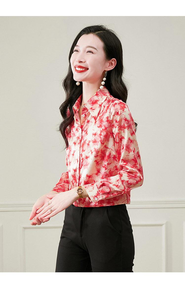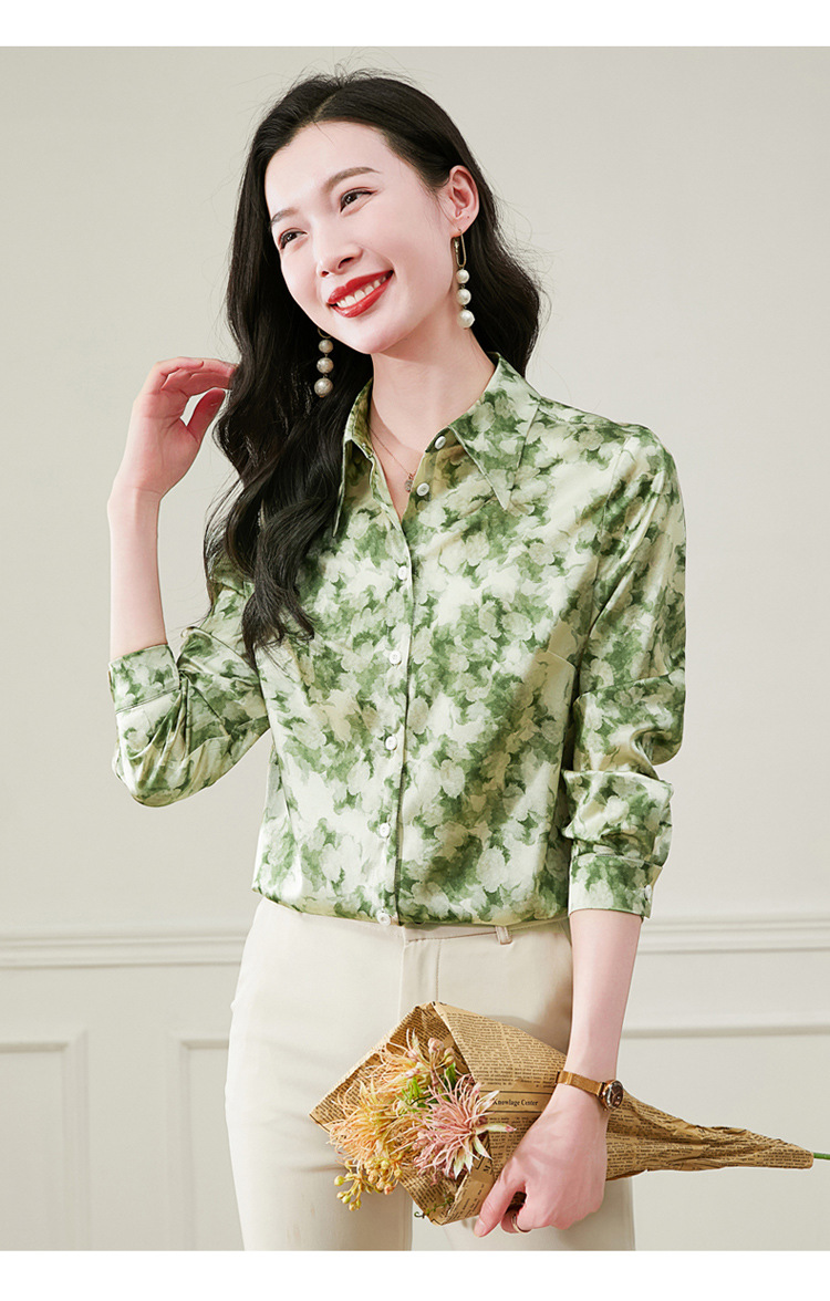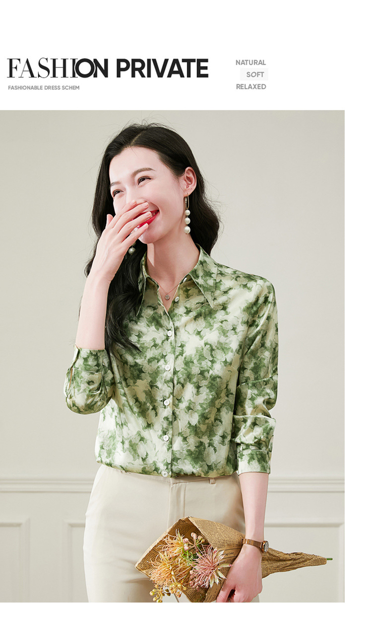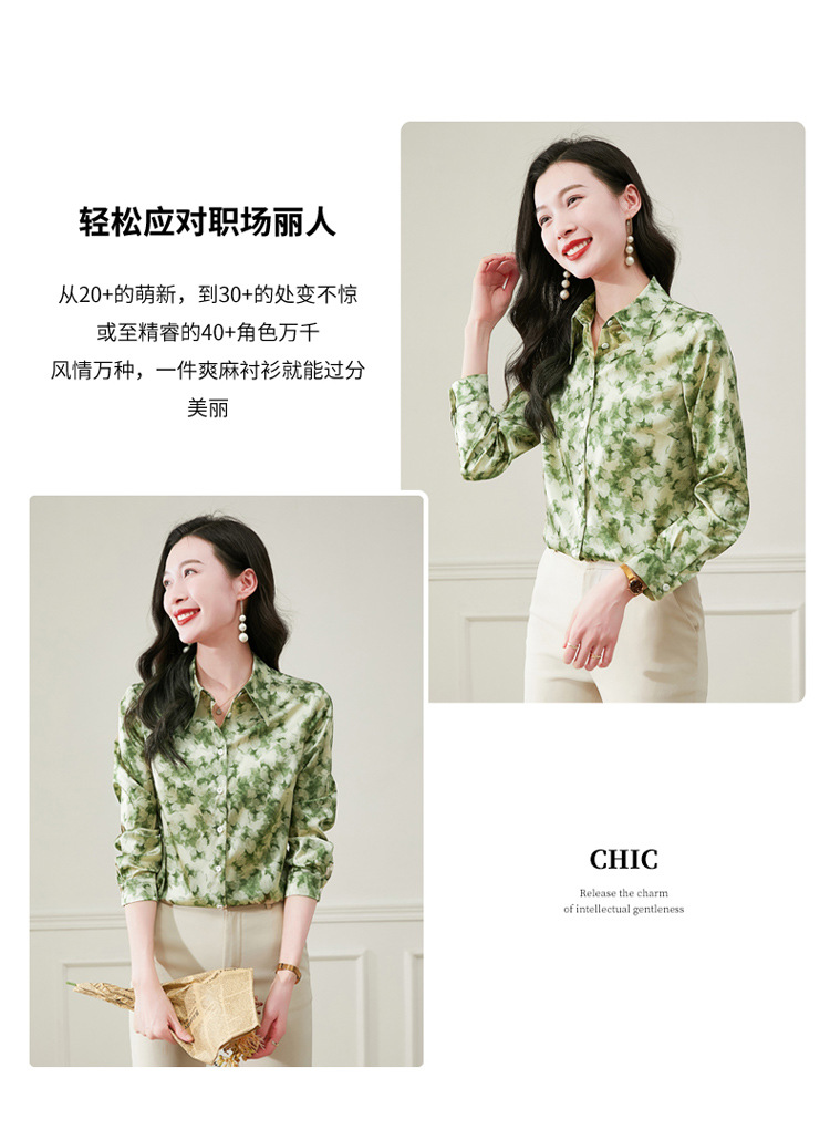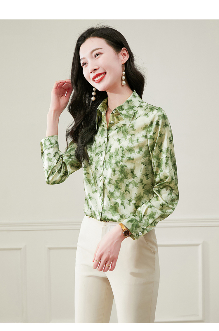 丁摩 19姆米重磅真丝衬衫女长袖印花气质高端桑蚕丝上衣3618