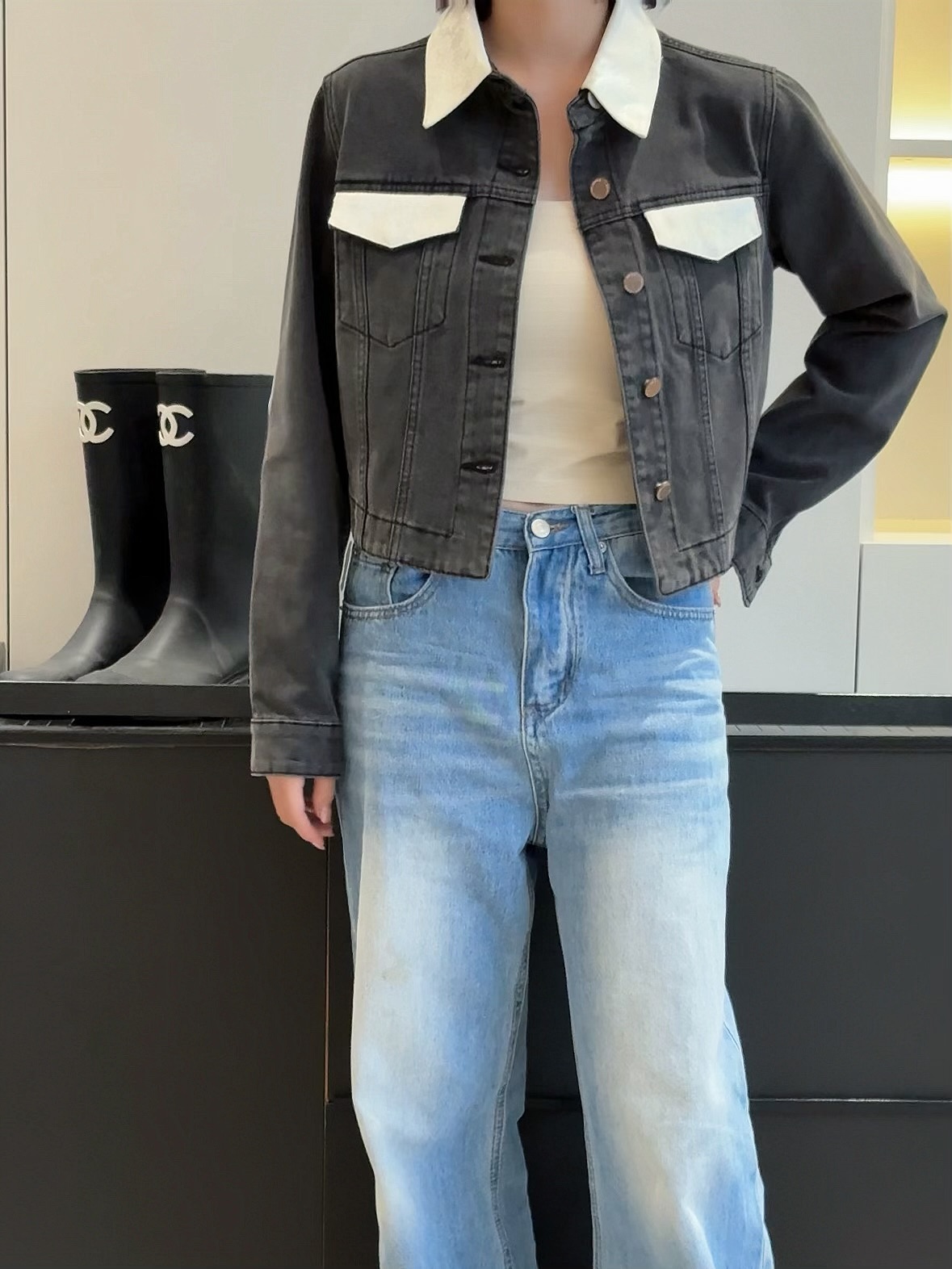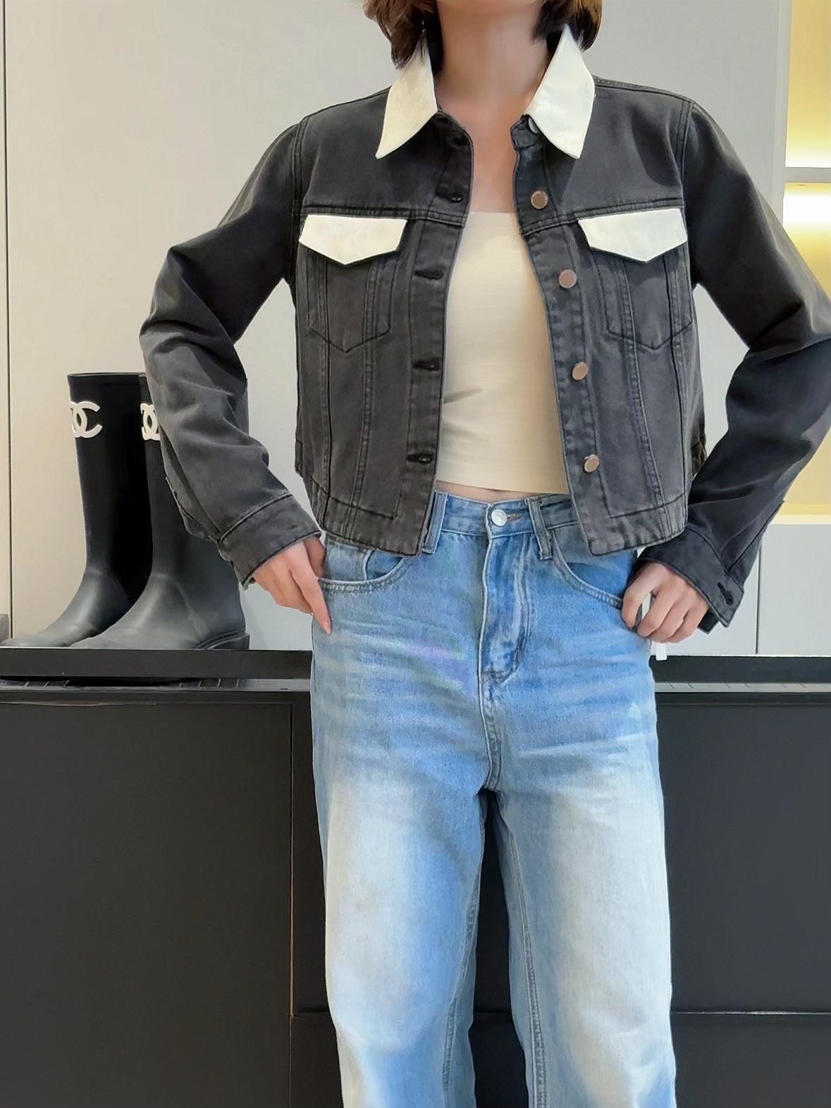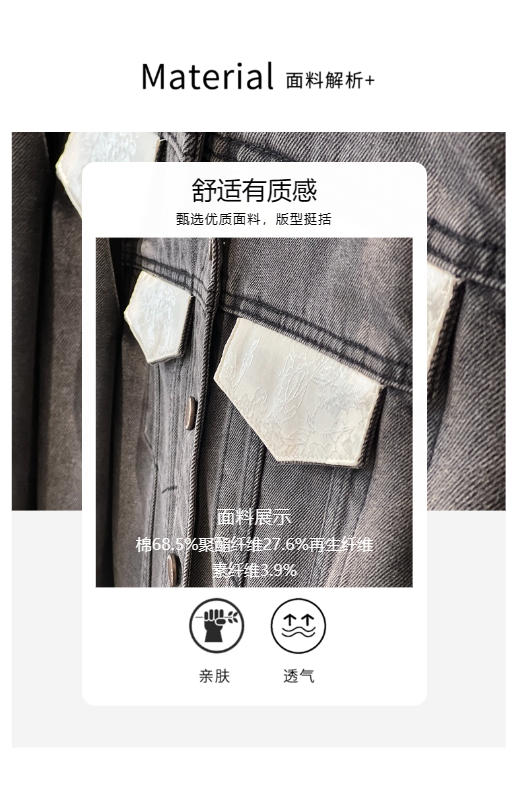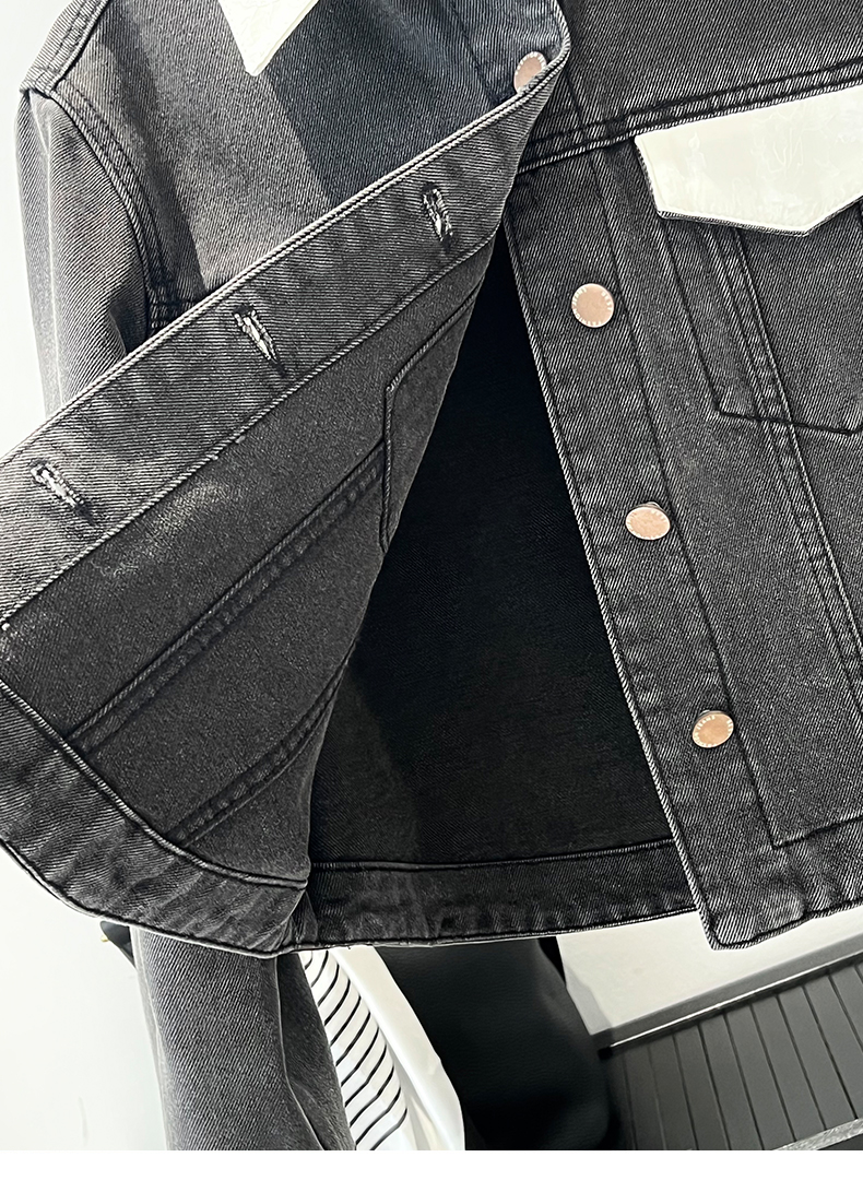 会员福利【精美刺绣牛仔】拉夏贝尔/La Chapelle高级感国风提花刺绣设计感牛仔外套撞色翻领夹克短外套