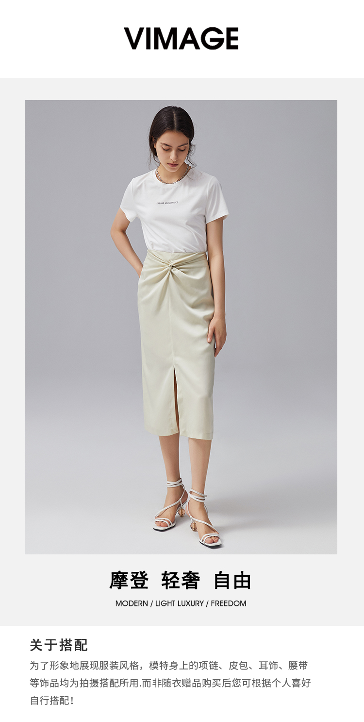 VIMAGE纬漫纪夏季新款优雅时尚高腰开叉百搭半身裙包臀裙女V1506133