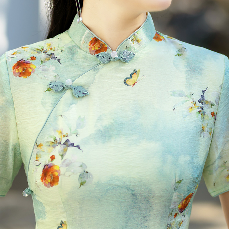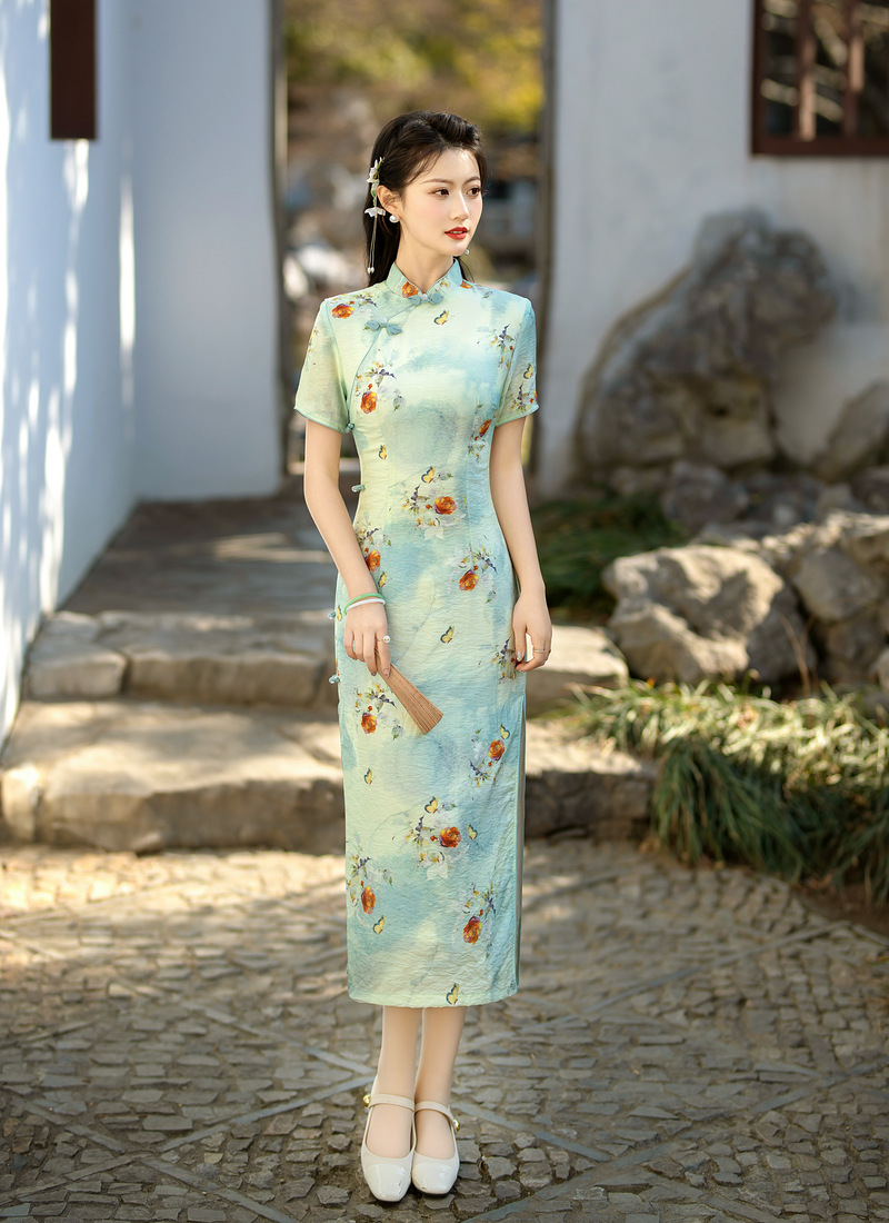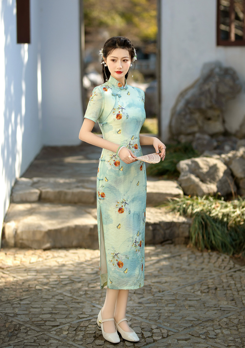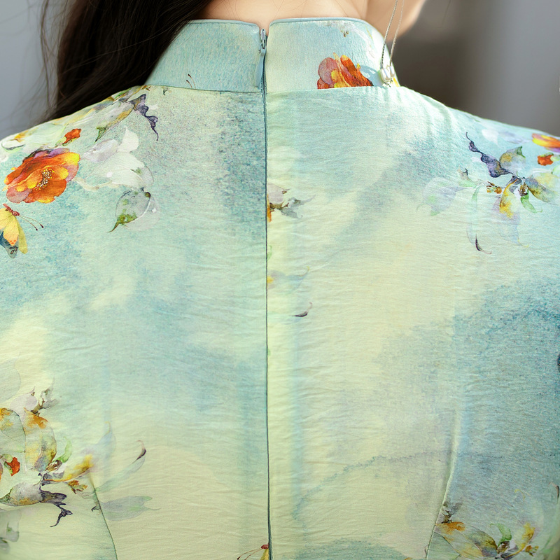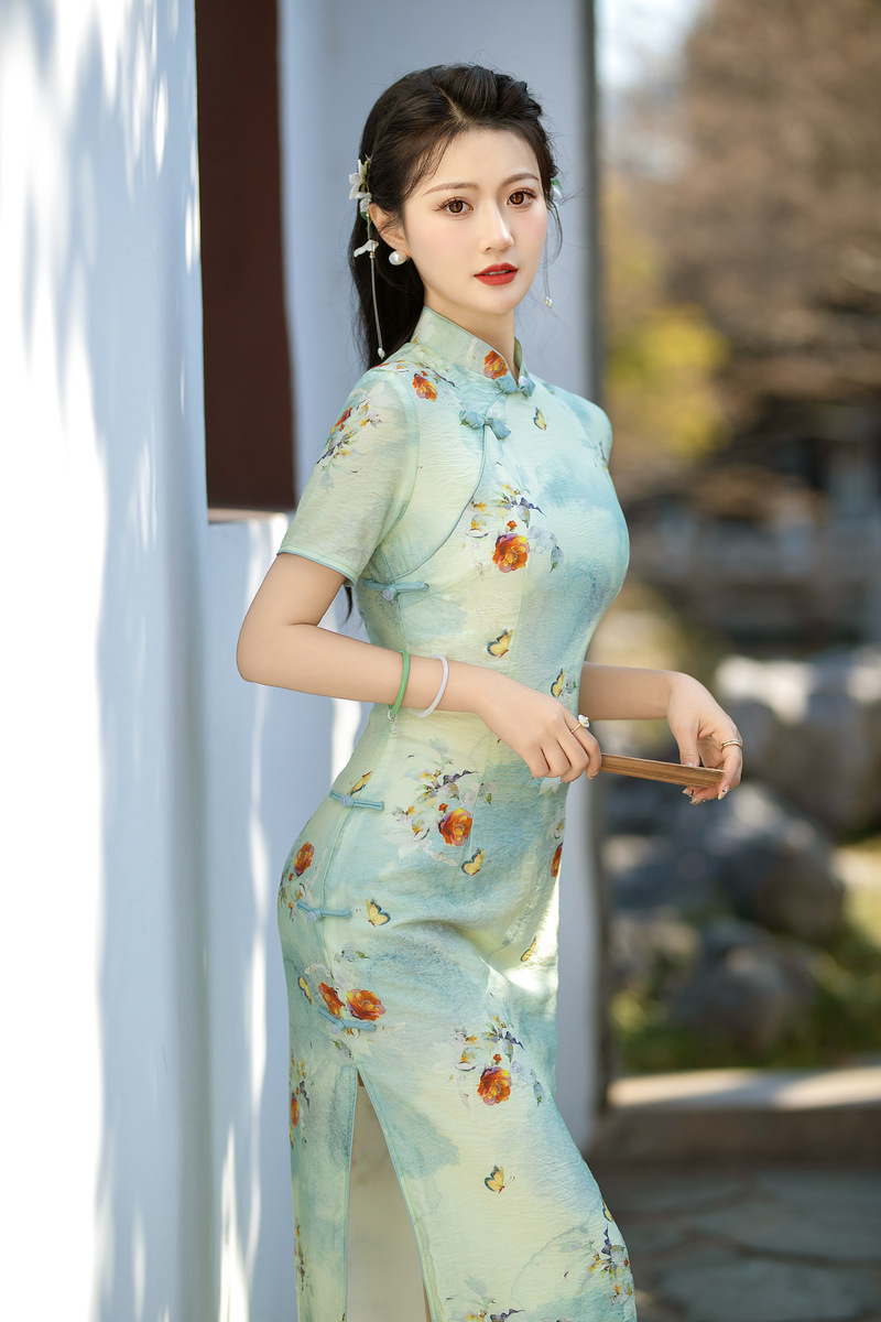 年轻款天丝麻,气质复古文艺长旗袍裙ZA-212