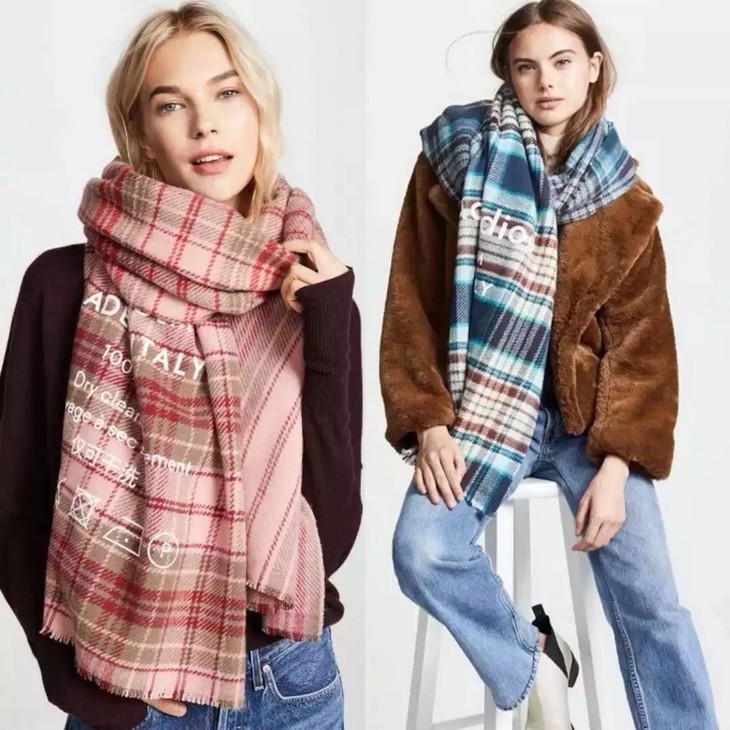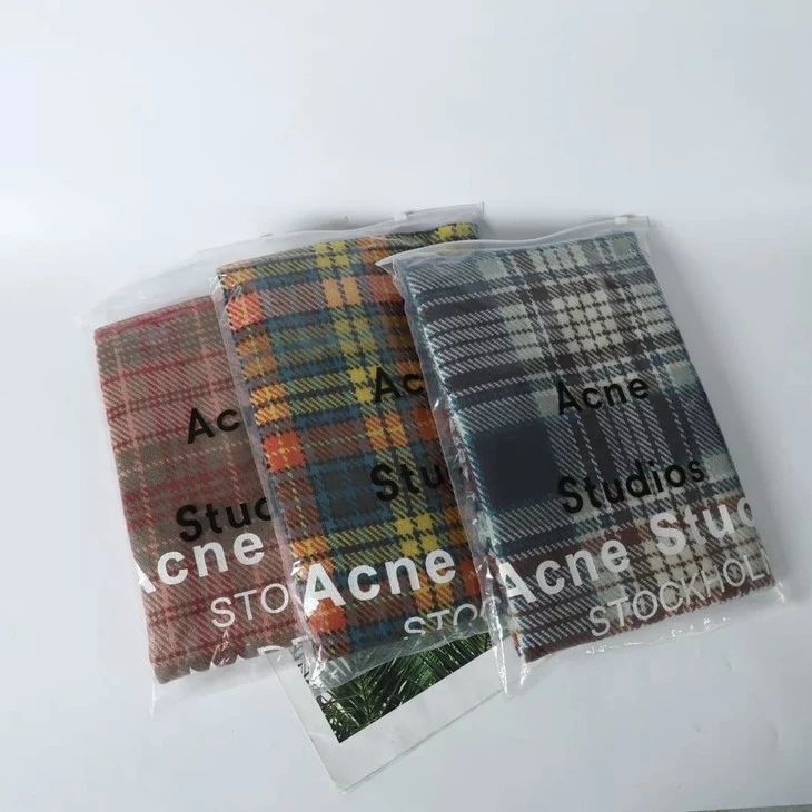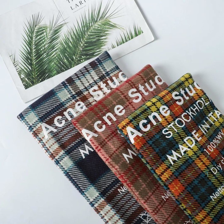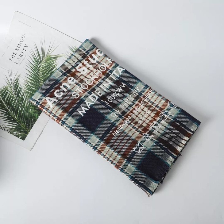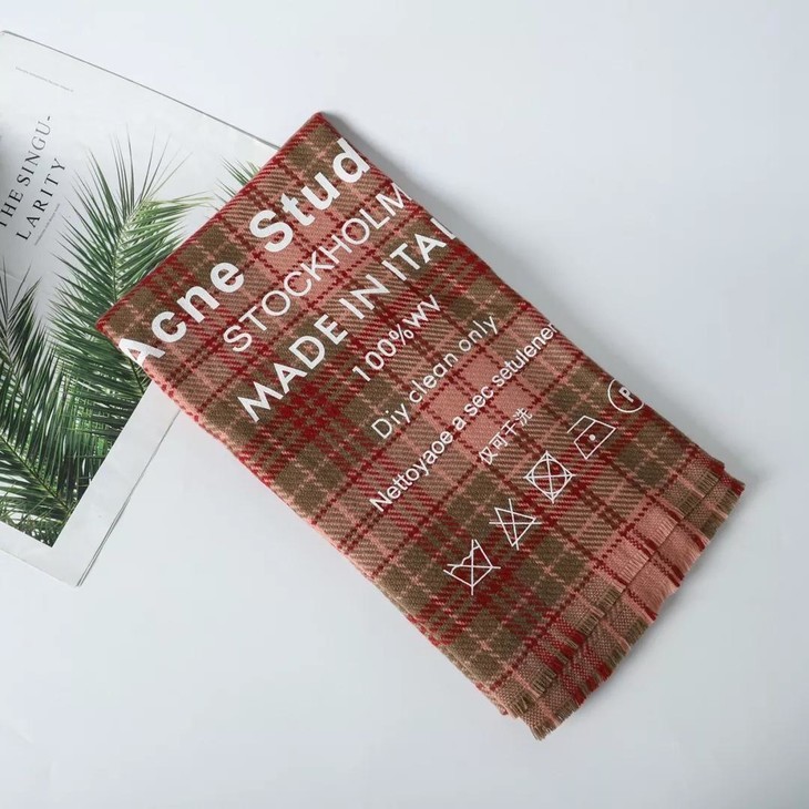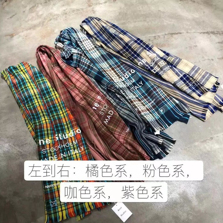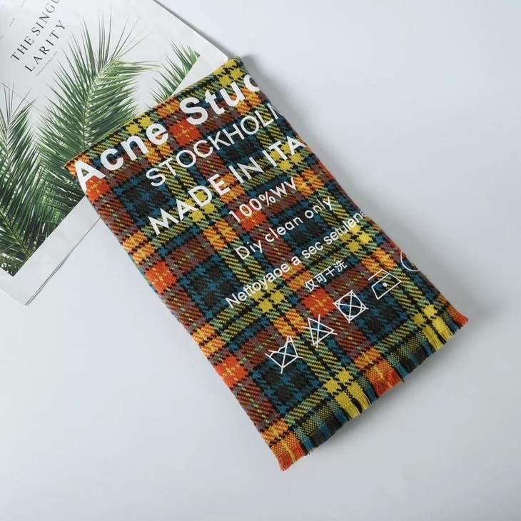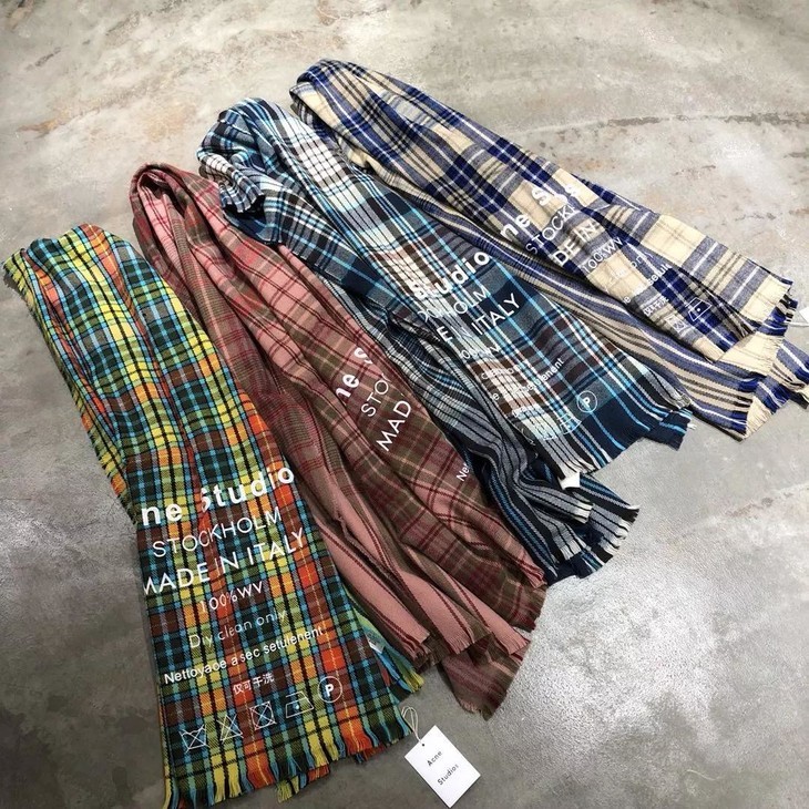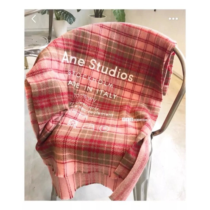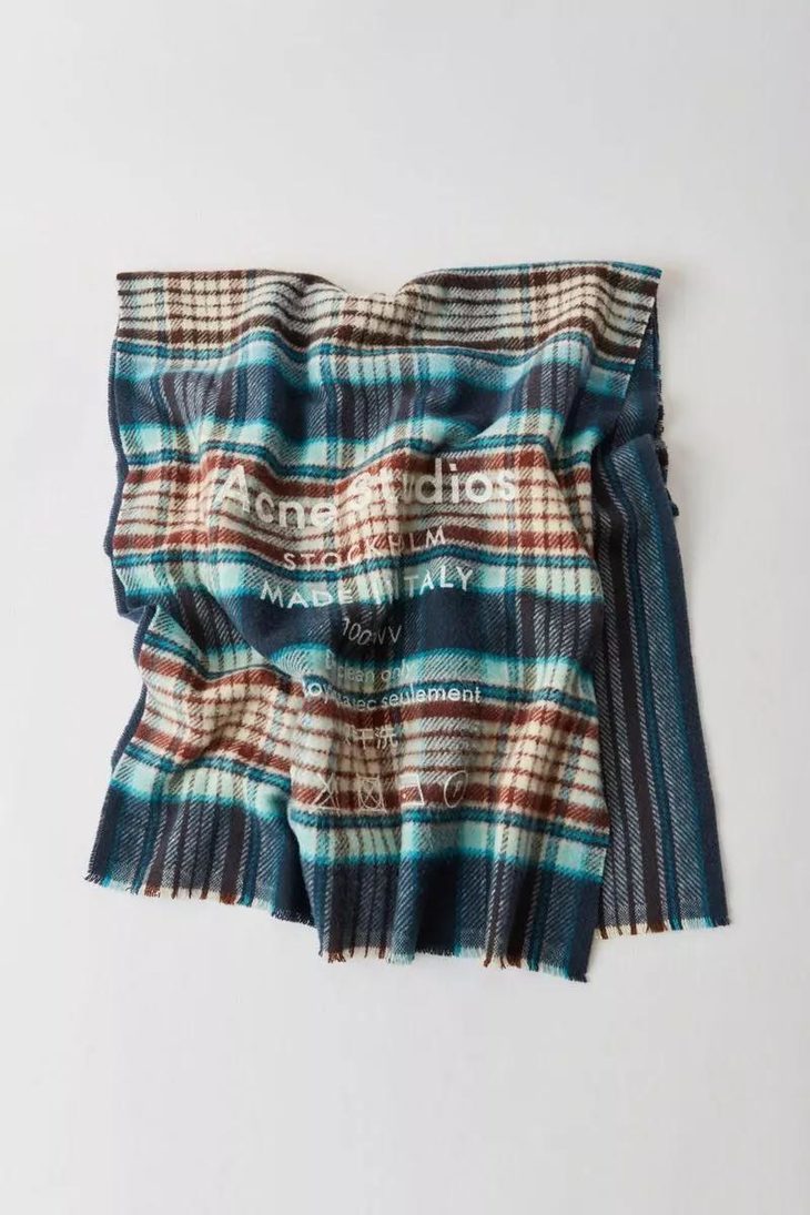 Acne Studios 18FW,今年的配色历年最好看,无法割舍,必爆单品,Cassiar Check 格纹超大围巾印有品牌标识,特别将成分标VAER LABEL 放大成为设计的一部分~