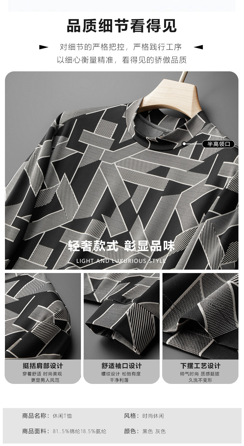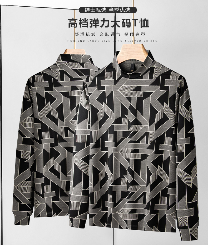 【DDS】大依优型大码男装春季高弹半高领卫衣时尚潮流百搭长袖T恤