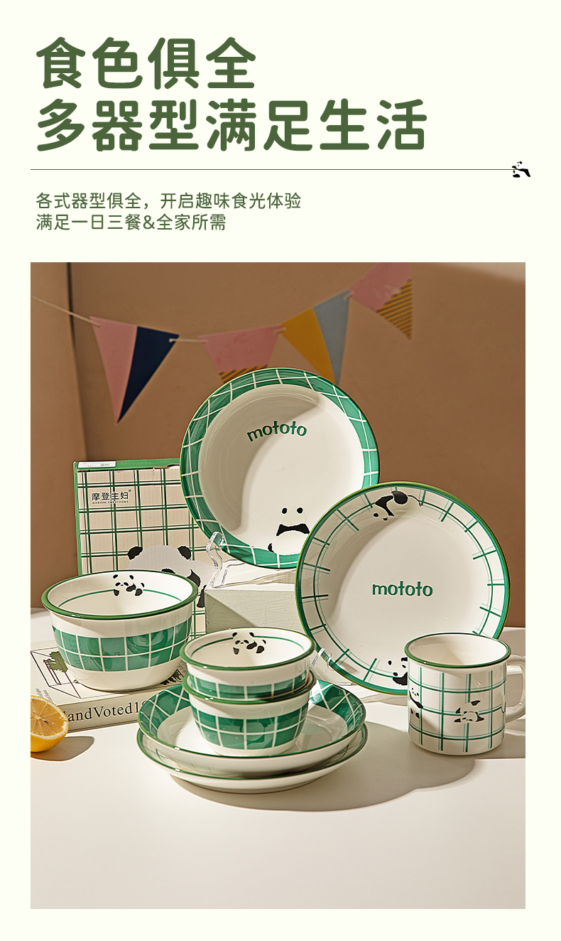 摩登主妇mototo熊猫餐具碗家用2025新款盘子儿童碗个人专用碗具