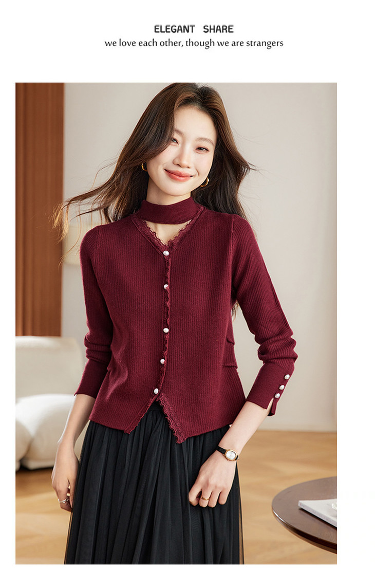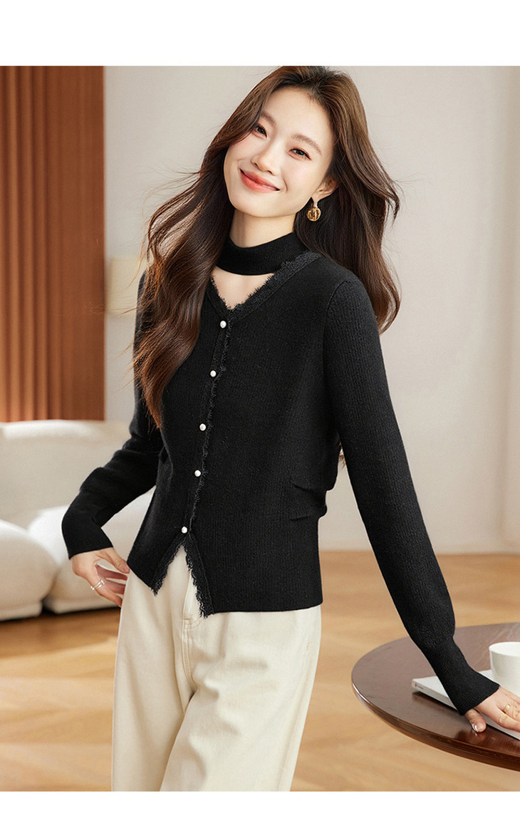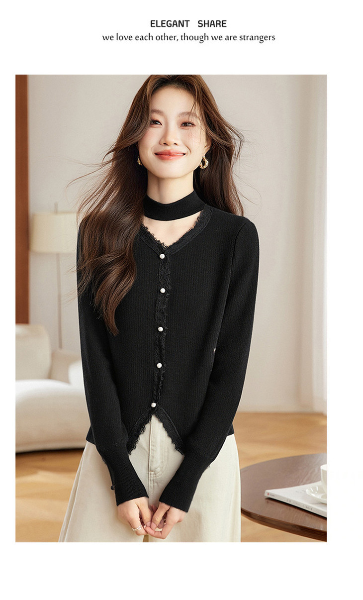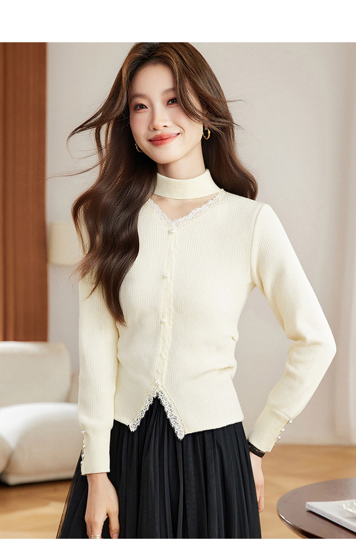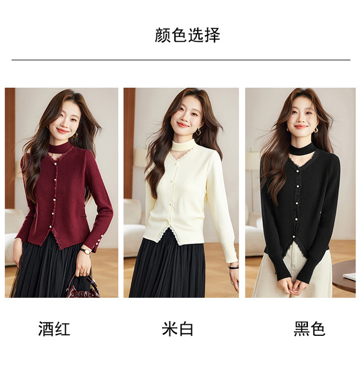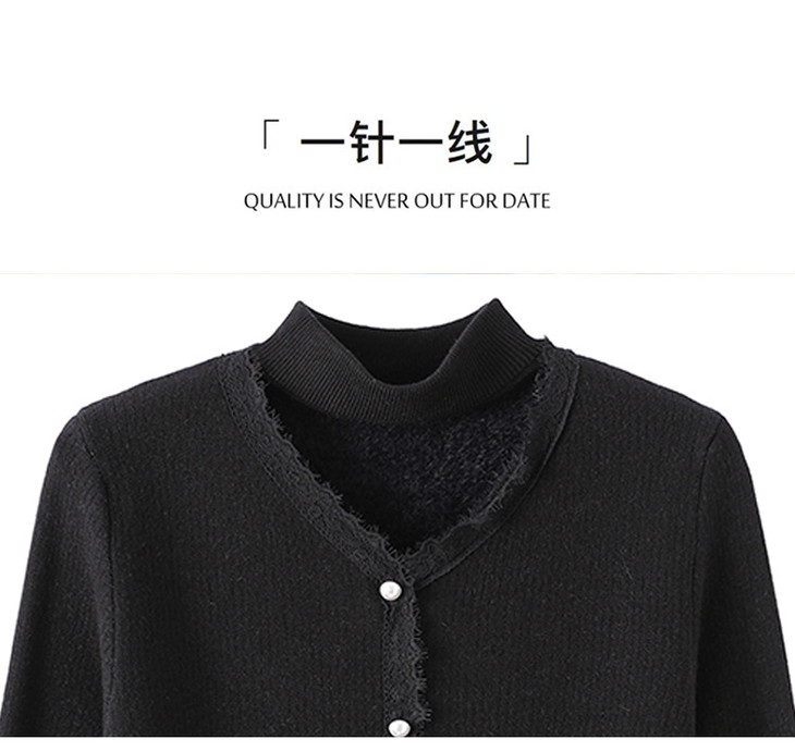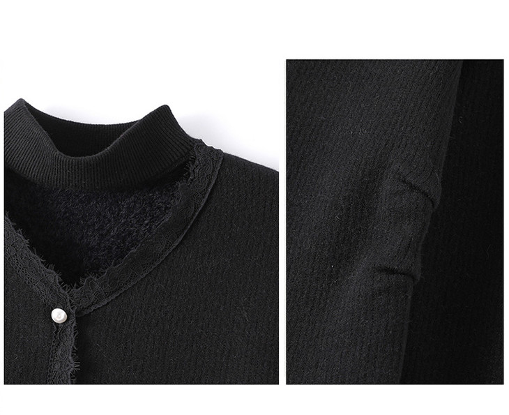 蕾丝花边V领挂脖打底衫,保暖加绒修身内搭CC-ML-2183