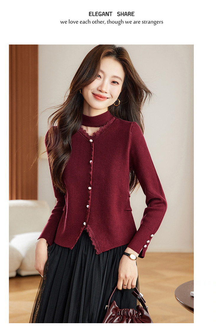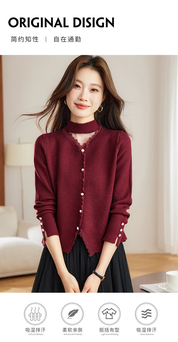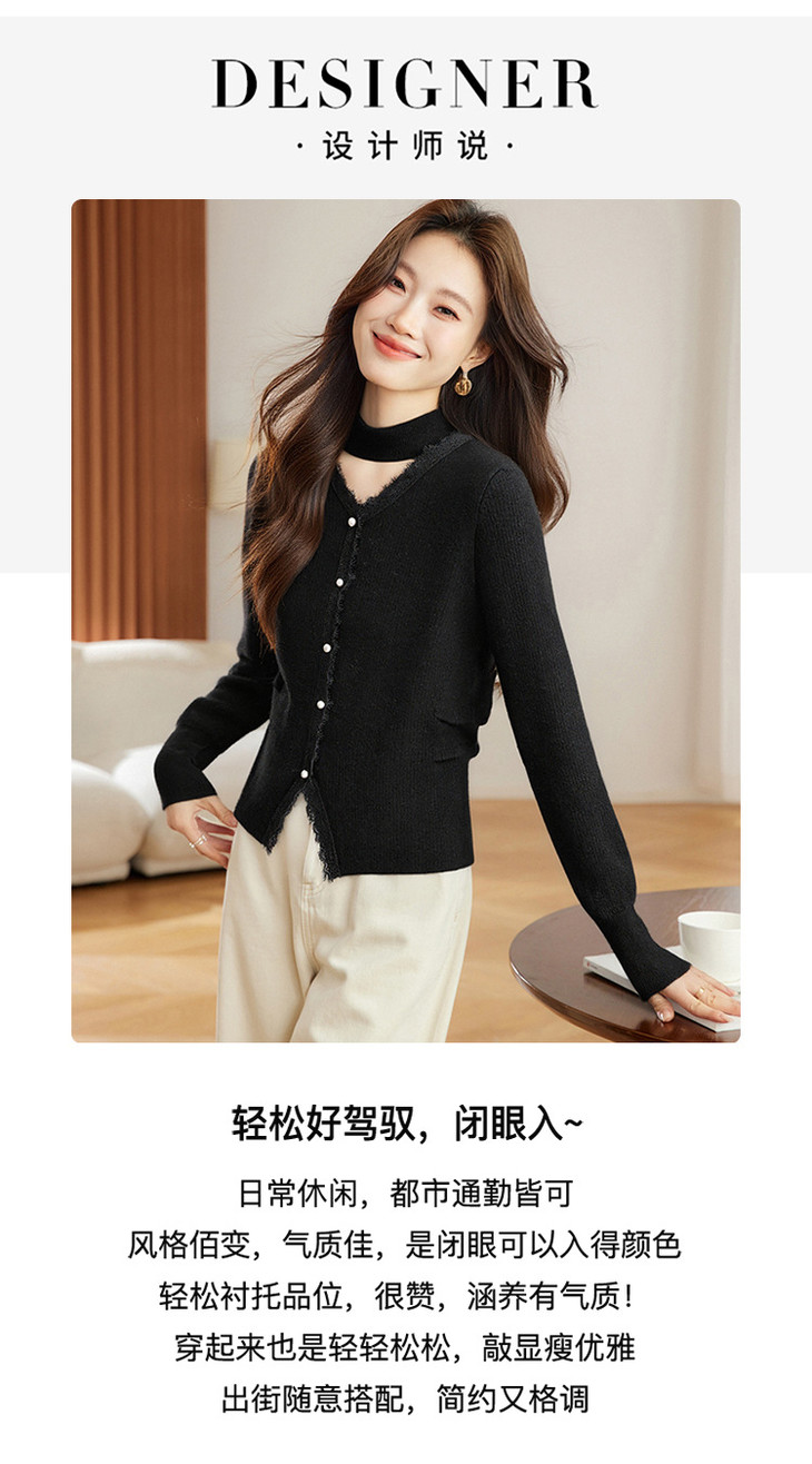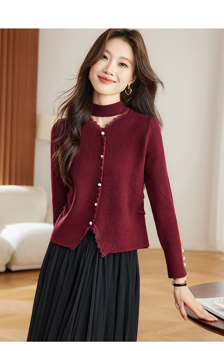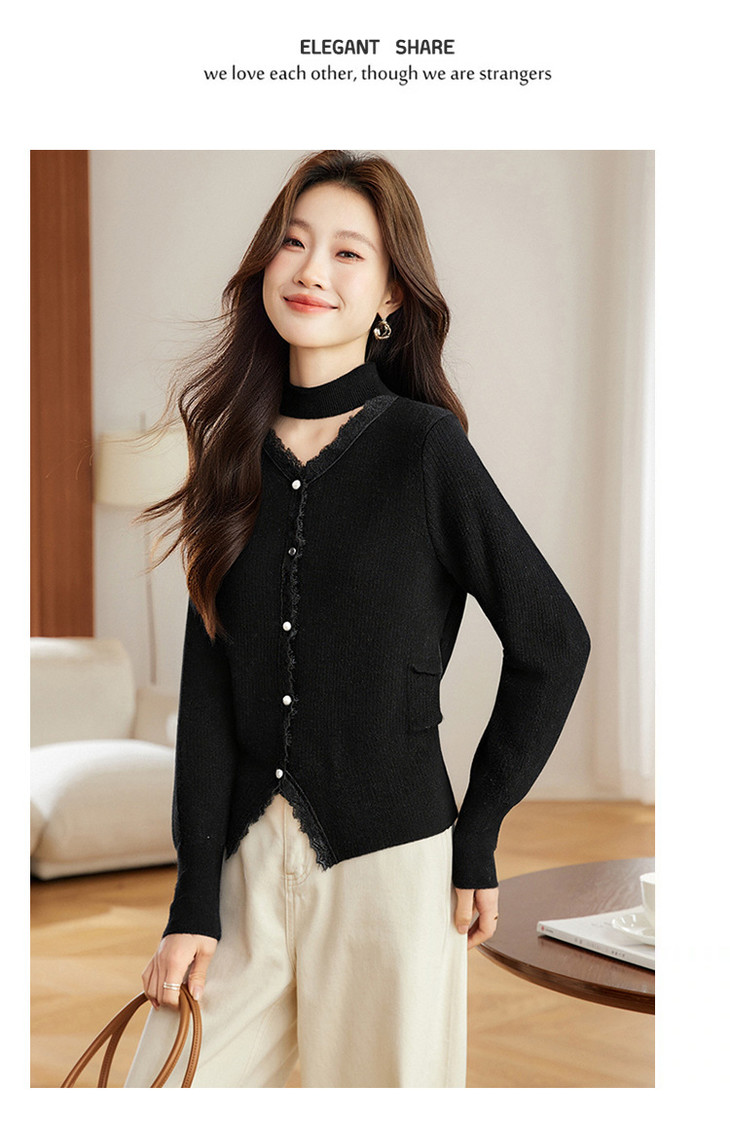 蕾丝花边V领挂脖打底衫,保暖加绒修身内搭CC-ML-2183