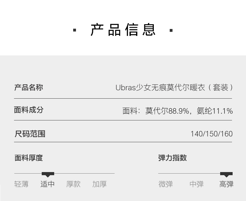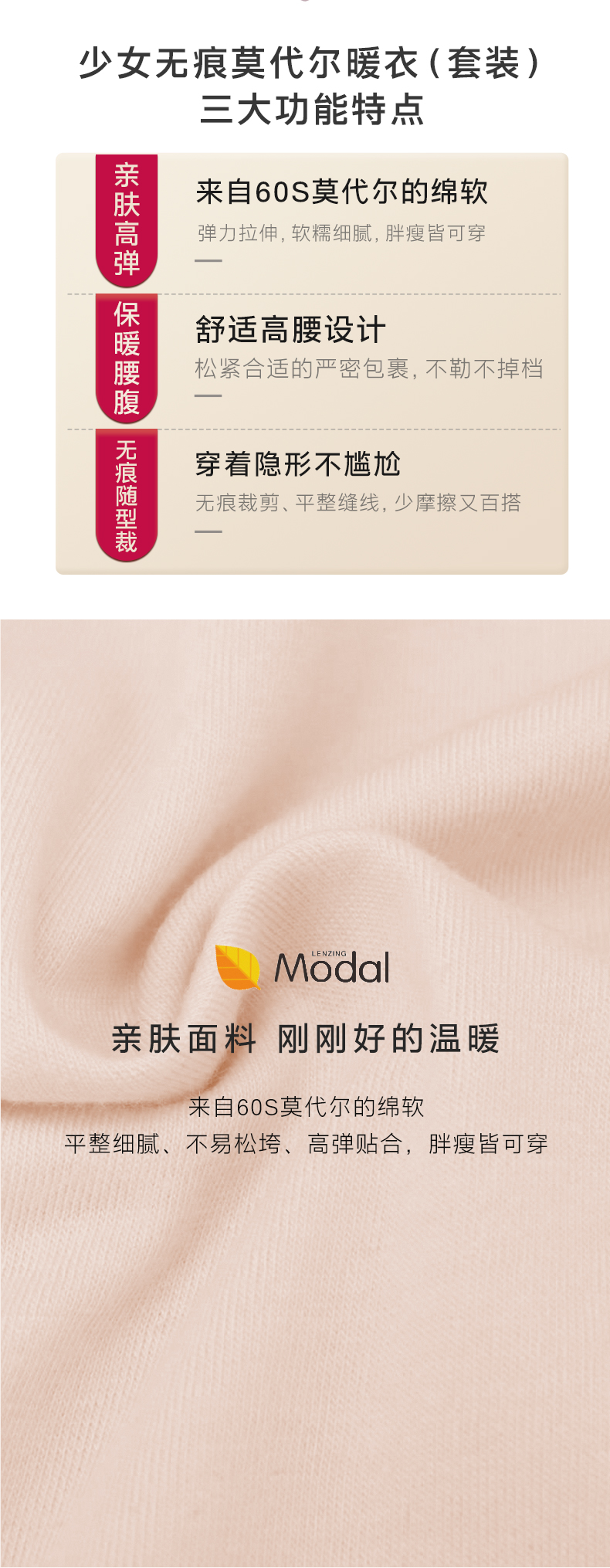 Ubras少女无痕莫代尔内衣套装高初中学生家居服秋衣打底