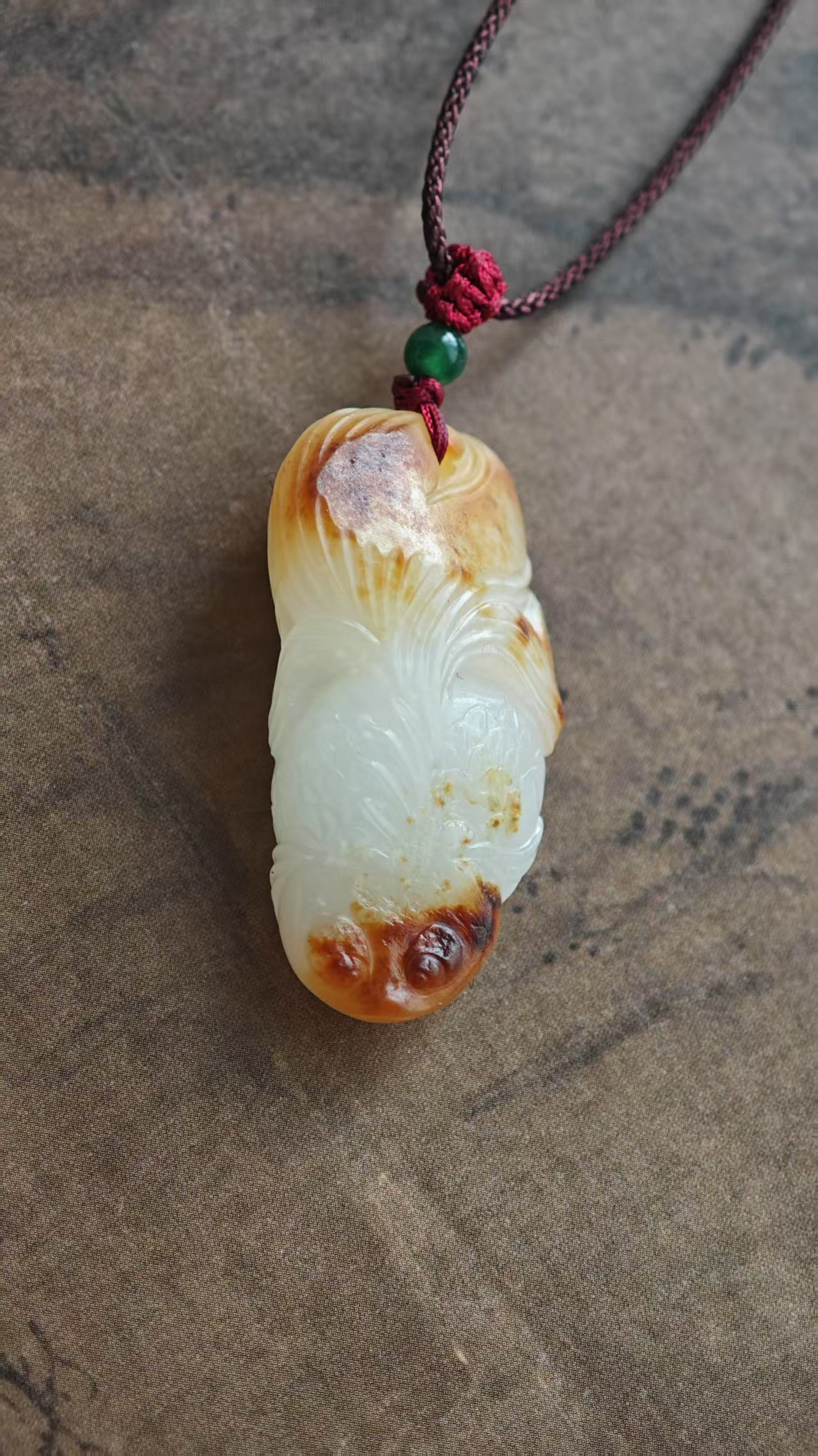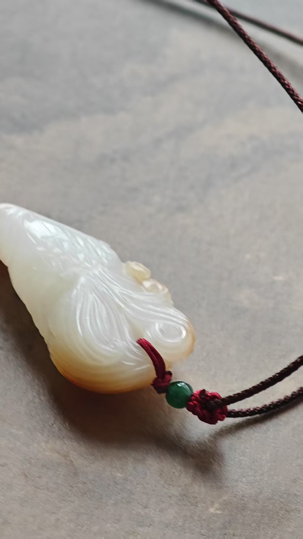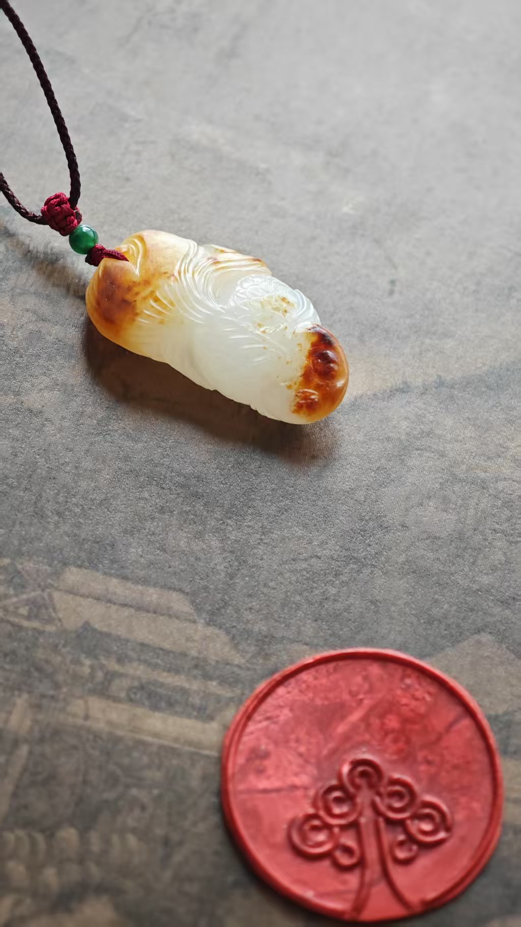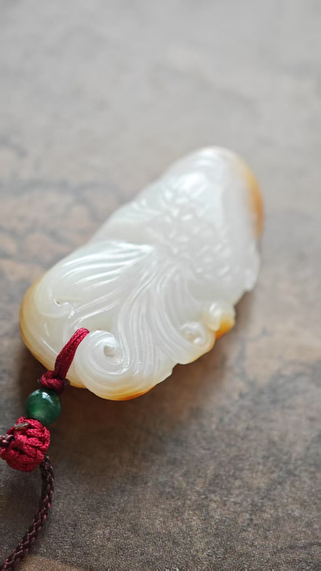 一面皮色艳丽,鱼头鱼尾都俏色而雕,