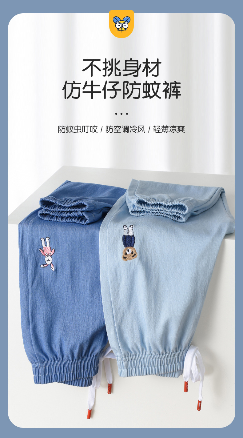 【79.9/任选2件】不挑身材,升级面料,会呼吸的防蚊裤!儿童防蚊裤 夏季薄款 天丝女童 牛仔裤大童装 宝宝长裤 男童裤子春夏装-QQ