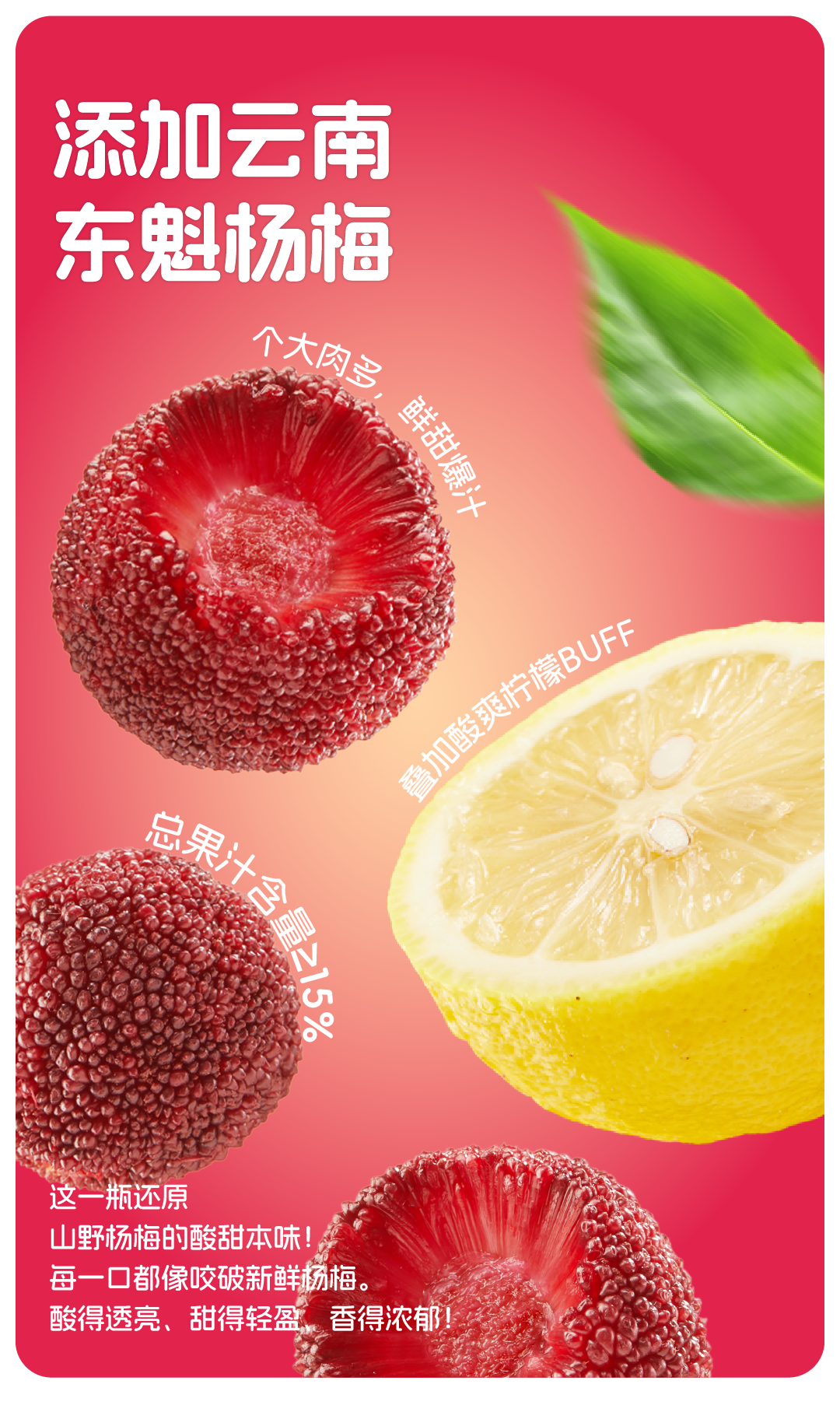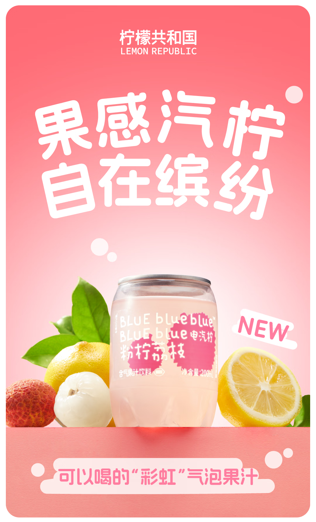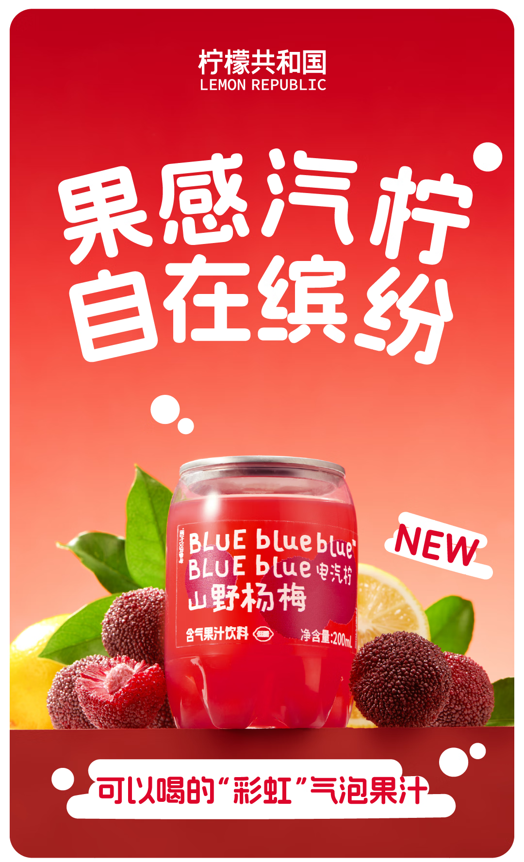 柠檬共和国山野杨梅粉柠荔枝爆汁三柠小罐饮料200ml/瓶含气泡果汁夏季饮料