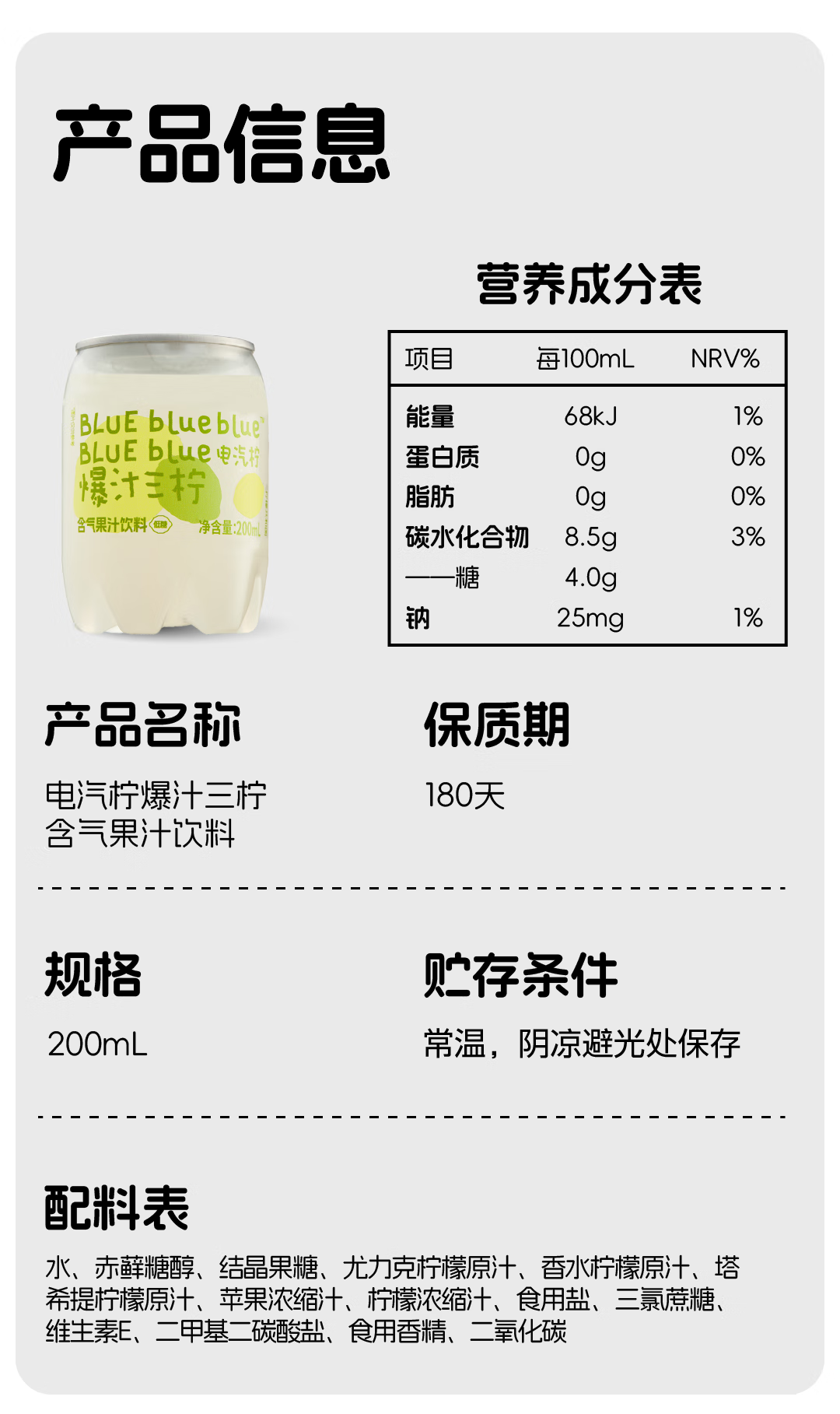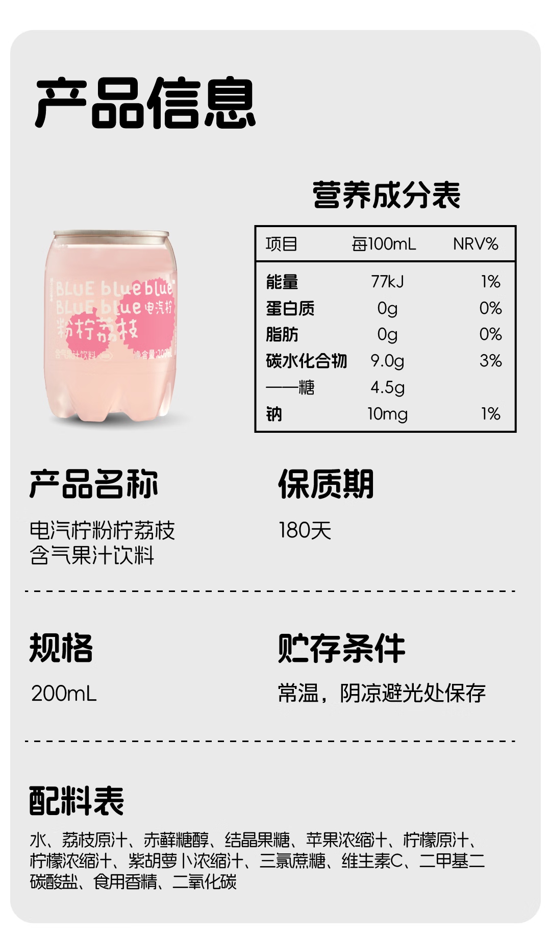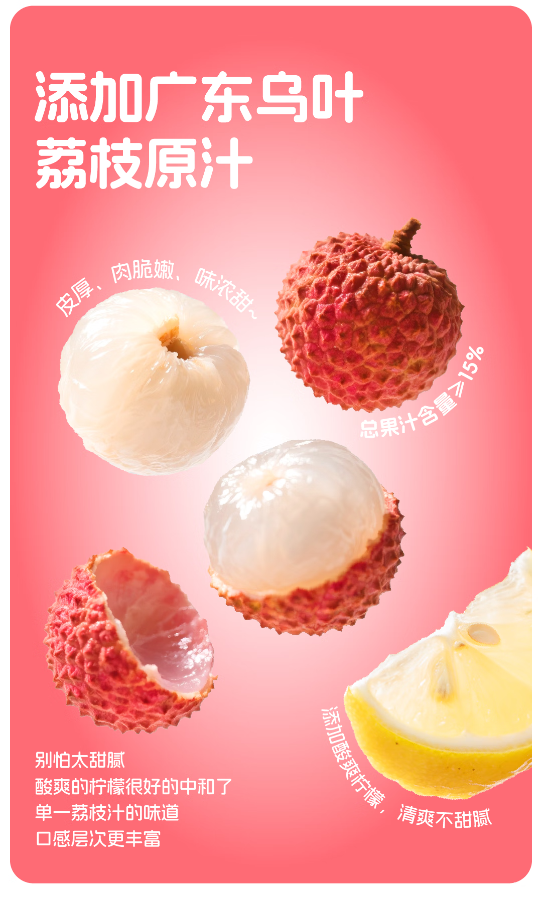 柠檬共和国山野杨梅粉柠荔枝爆汁三柠小罐饮料200ml/瓶含气泡果汁夏季饮料