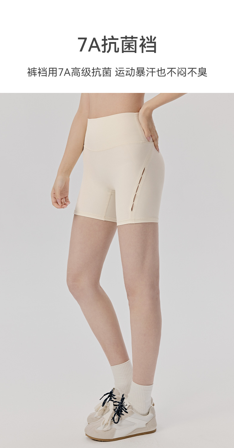 【限时秒】YOGACODE【火树银花系列】运动短裤女侧边镂空透气7A抗菌健身短裤DWS116027