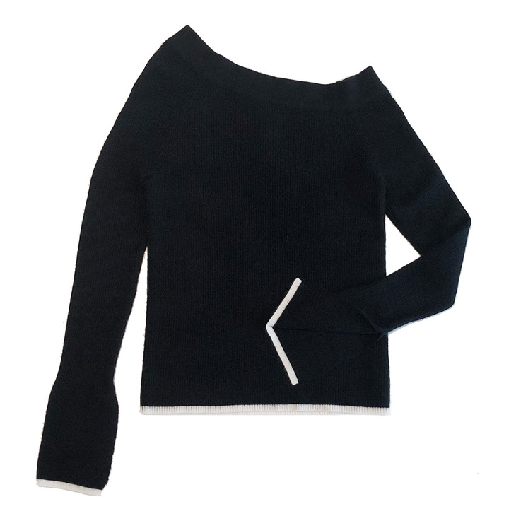 “斜芳窥见”露肩长袖羊绒衫