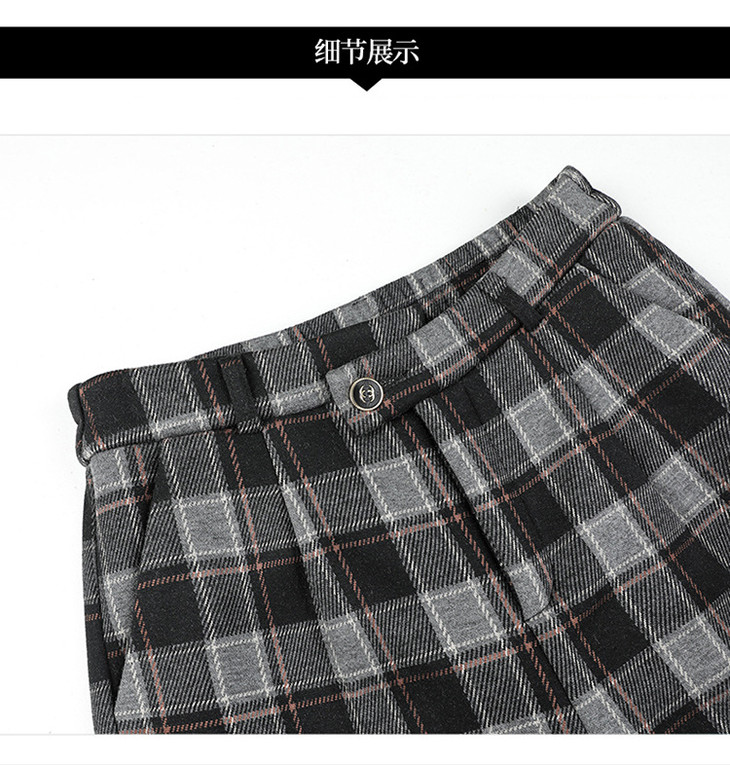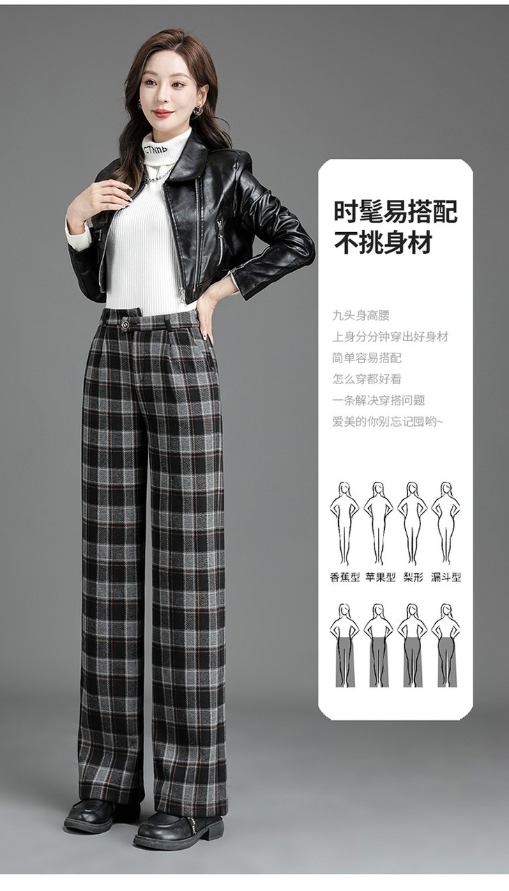 格纹复古一体绒休闲长裤,窄版显瘦阔腿裤垂坠感修身直筒裤MYX-KDFY-39635-L