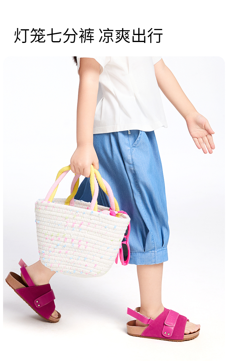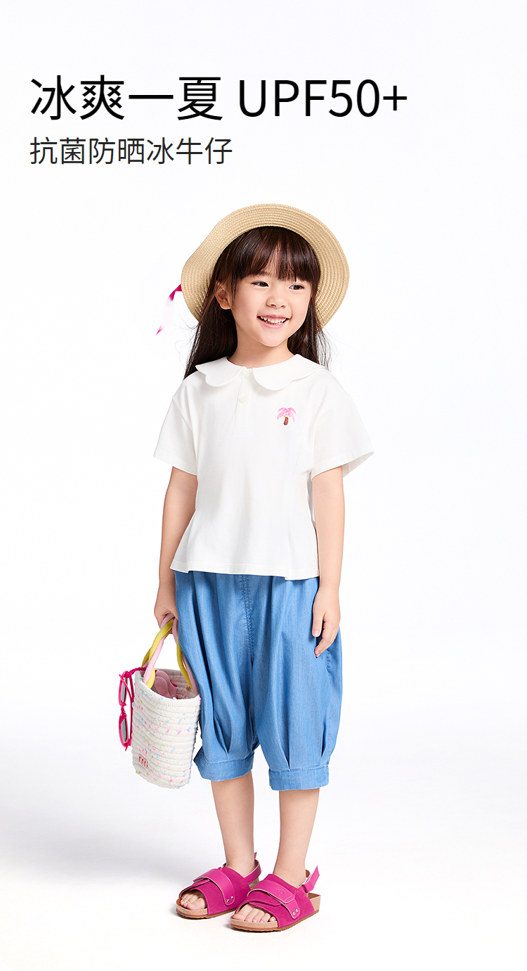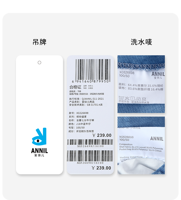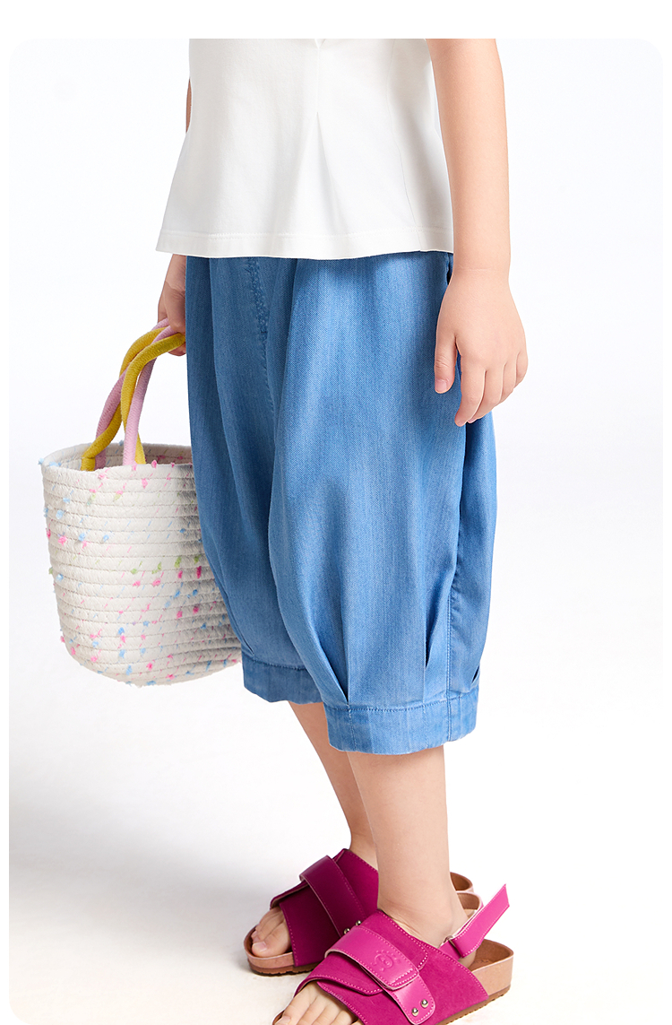 【实体店同款】女童全腰七分牛仔裤夏季新款安奈儿童装XG526698