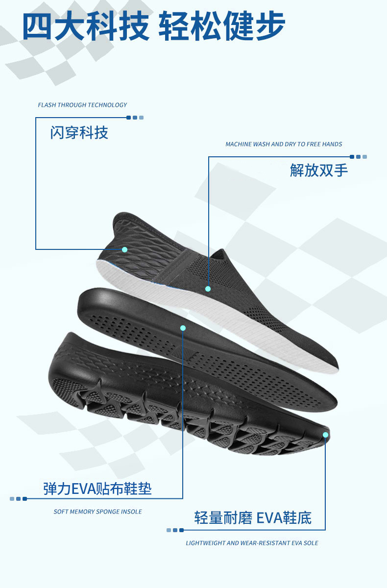 SACHA男女同款一脚蹬秒穿轻便不累脚的百搭运动鞋健步鞋,懒人福音,走路巨舒服-sy2686