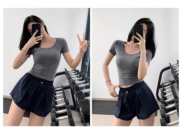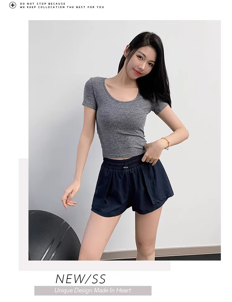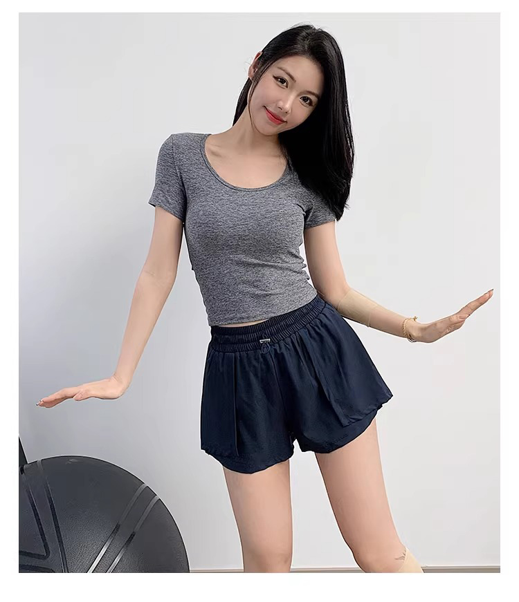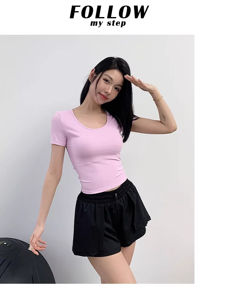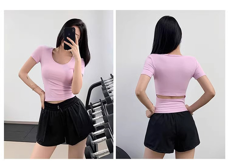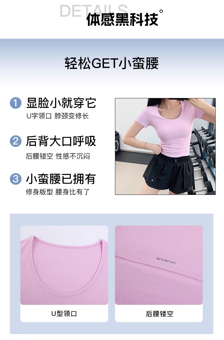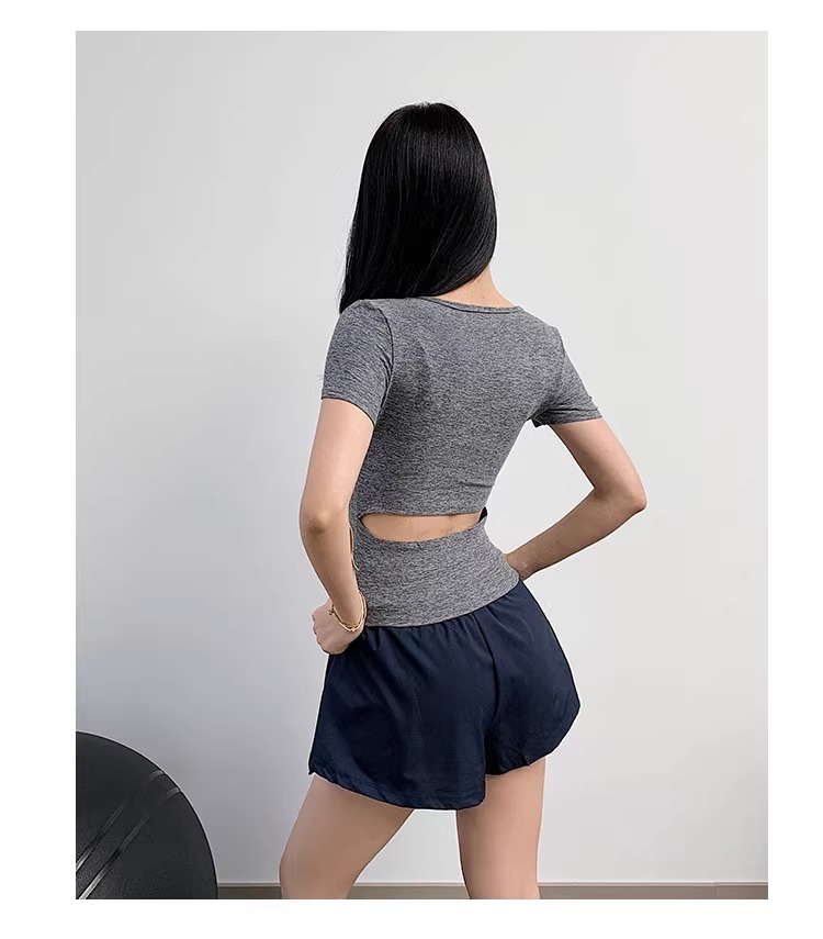 【3~5天发货】跃牌【美度空间】系列 圆领裸感修身显瘦运动T恤高级感后腰镂空瑜伽短袖ADTX52016