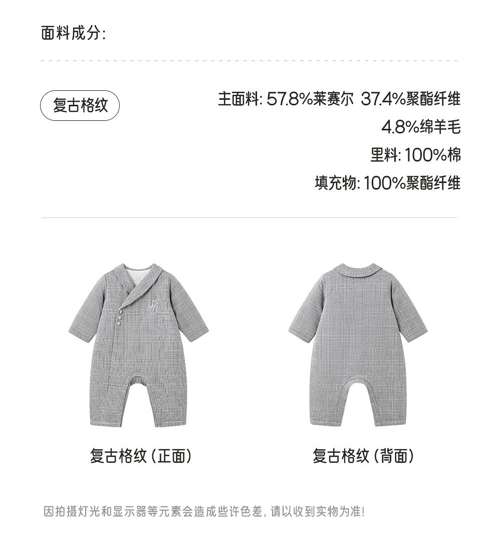 【高定系列】英氏婴儿连体衣秋冬新款保暖棉羊毛男宝宝外出服哈衣