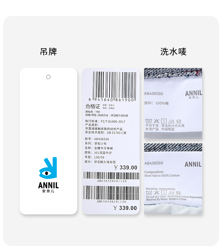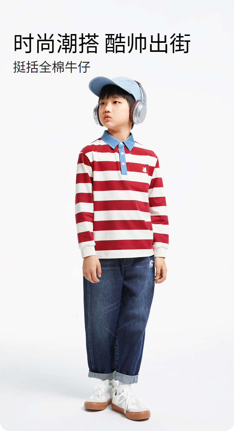 男童挺括全棉牛仔单裤新款安奈儿童装实体店同款AB436550