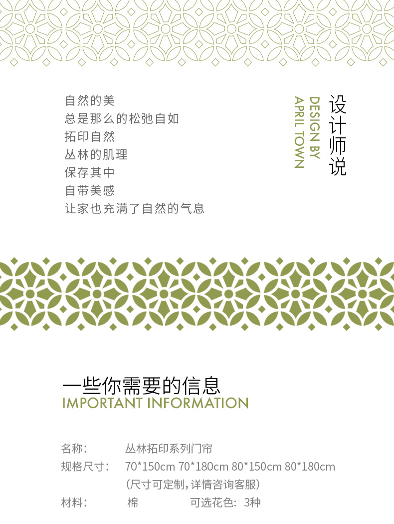丛林拓印系列门帘隔断帘半帘家用免打孔洗手间厨房布帘夏季