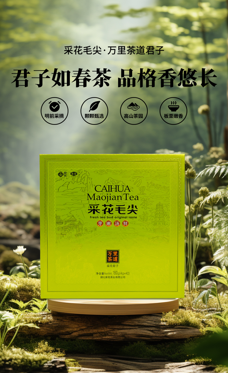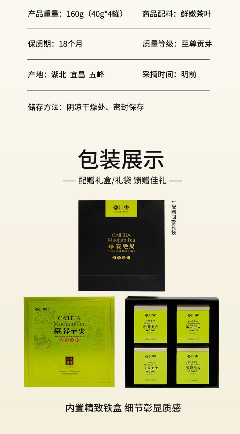 采花2025新茶 采花毛尖明前采摘 五峰茶明前嫩芽茶万里茶道 君子160g(40g*4罐)