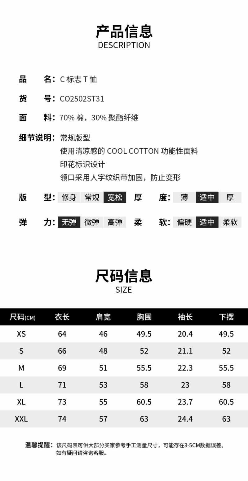 【限时秒杀】Covernat韩国潮牌C标T恤时尚男女情侣同款宽松休闲短袖2025夏季新CO2502ST31