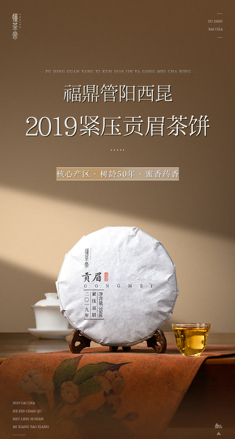懂茶帝高山茶福鼎白茶高山老白茶2019年西昆菜茶贡眉饼350g