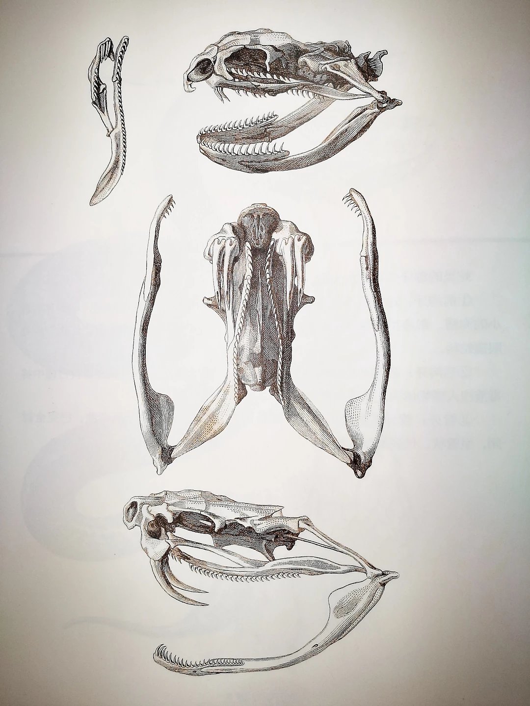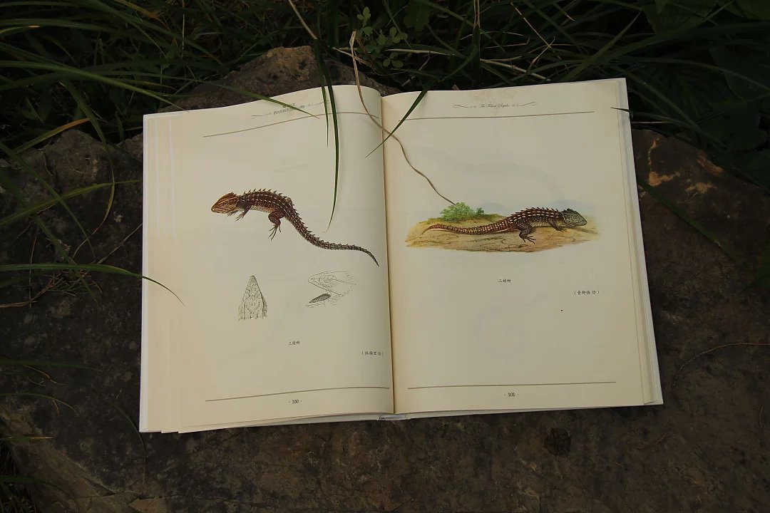 杜梅里于1834—1854年间出版的《爬行纲通志》(Erpétologie Générale, Ou Histoire Naturelle Complète Des Reptiles)称得上是科学史上的鸿篇巨著。全套书共10卷,总计页数近7000页,前9卷为文字描述部分,从形态学、解剖学、生理学等诸多方面详细描述了1393个物种,最后一卷含有120幅精美的手绘图版。本书中署名“杜梅里 绘”的图幅,就主要出自这套历史性的巨著。这套著作的出版并非杜梅里一人之功,参与编写和绘图的还有杜梅里的助手加百利·比布龙(Gabriel Bibron,1805—1848)以及杜梅里的儿子奥古斯特·杜梅里(Auguste Duméril,1812—1870)。
